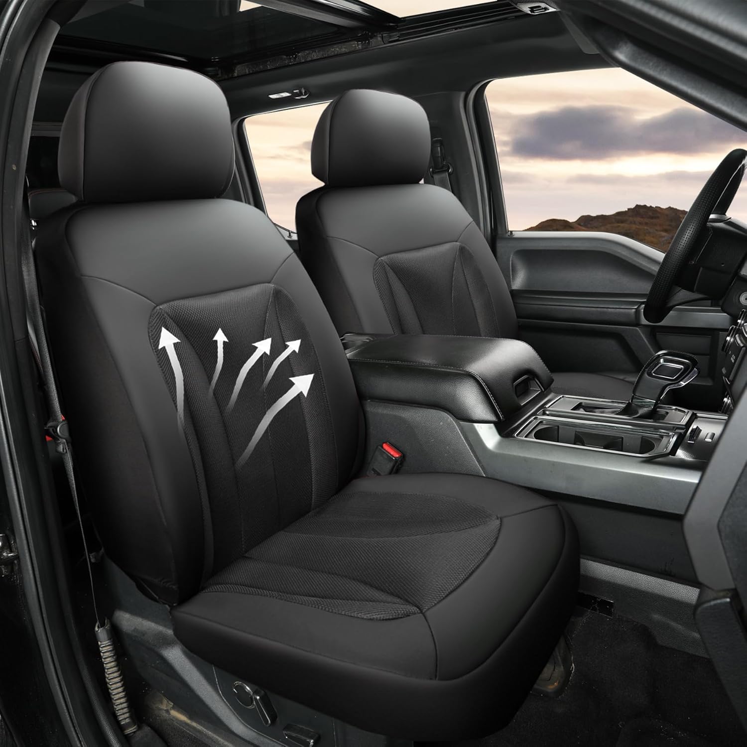 - ăCompatibilityă The ventilated front seat covers are custom-fit for Ford F150 F250 F350 F450 SuperCrew / Crew Cab Pickup Trucks