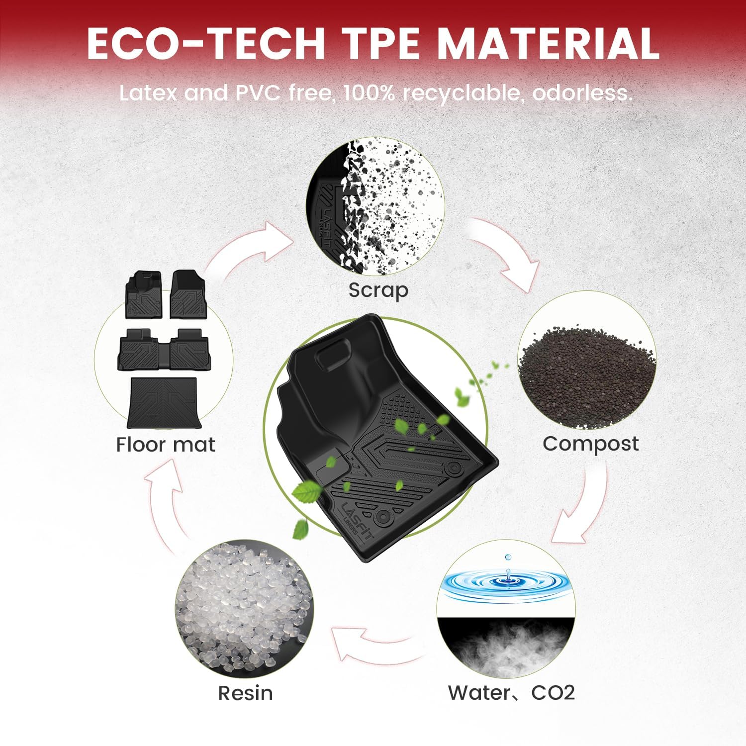 - ăDurable & Safe MaterialăLASFIT all weather floor mats for Trax & Encore use elastic TPE (Thermoplastic Elastomer), no foul odor is produced even at high temperatures, soft touch and exquisite finish. The LASFIT floor mats for cars are skid-proof and recyclable.