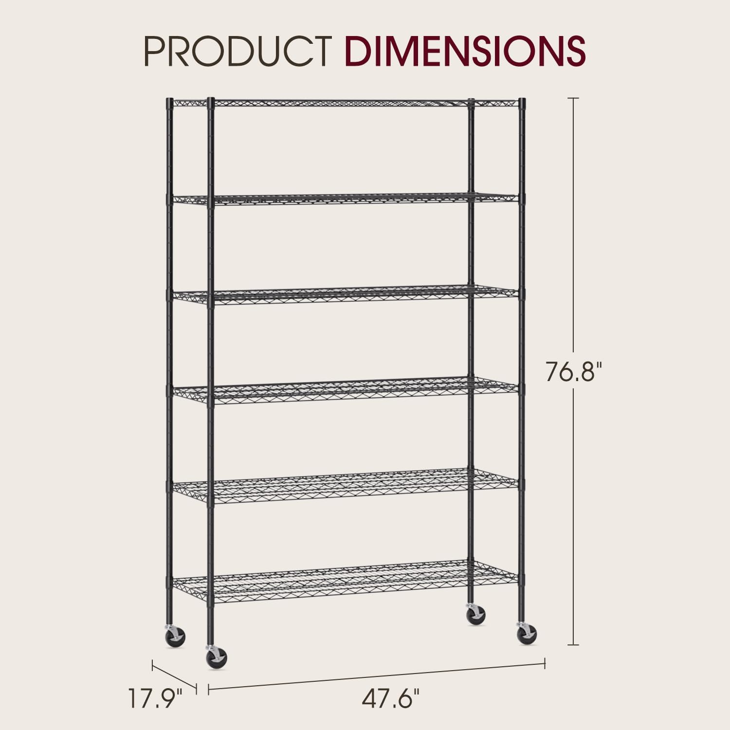 - √【ADJUSTABLE WIRE SHELF】: You can adjust the height of the storage shelves according to the size of the item.The spacing of each layer of this metal shelf can be adjusted.Shelves of the wire shelving unit are adjustable height at 1" increments.storage shelves metal shelf wire shelving unit.