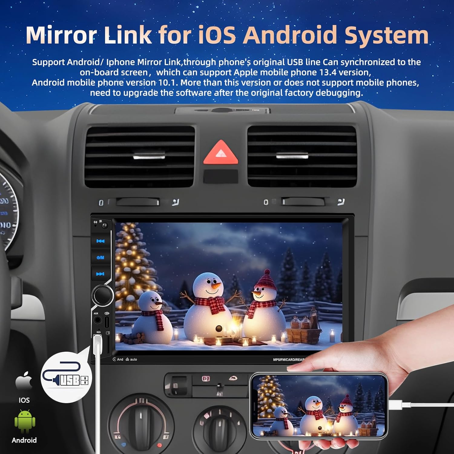 - [Steering Wheel Control & Backup Camera]: Steering wheel control allows you to easily control song switching, hands-free calling, and volume control, which is more convenient when driving to avoid distracted driving. Double din stereo supports rear view camera input. Waterproof, night vision, wide angle, easy installation and safety assistance. Connect the rear view camera and the car stereo display will automatically switch to the rear view details.