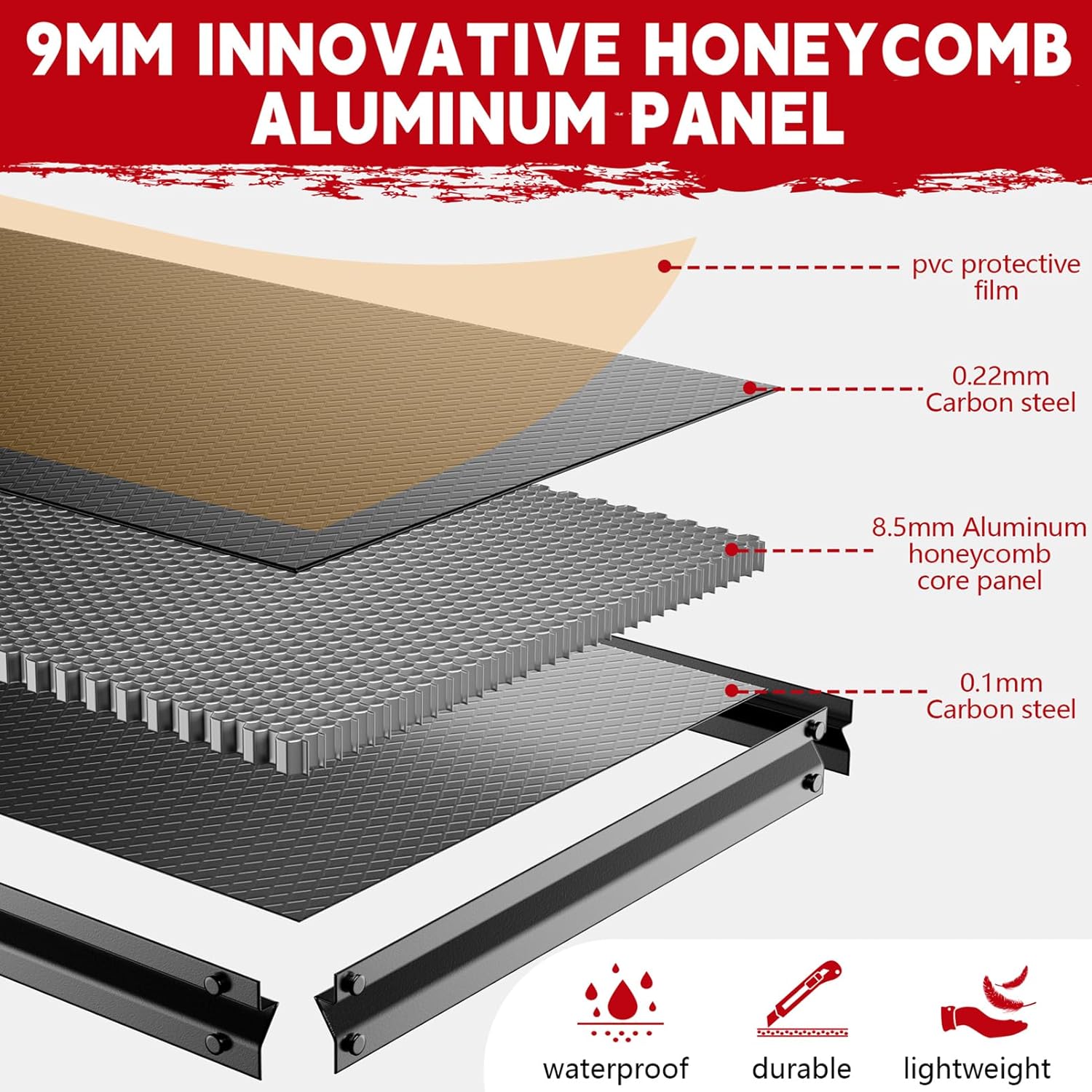 - [Innovative Aluminum Garage Shelf â Built for Durability] Crafted with 9mm thickened aluminum honeycomb panels and a reinforced metal frame, this heavy duty storage shelf is engineered to thrive in tough environmentsâfrom garages to workshops. The hexagonal honeycomb structure (nature's own strength design) boosts deformation resistance, while lightweight yet rugged aluminum stands up to humidity, accidental bumps, and daily wear. Merging metal sturdiness with aluminum's corrosion resistance, it outlasts flimsy alternatives, making it a long-lasting solution for tool rooms, storage areas, and busy workspaces.