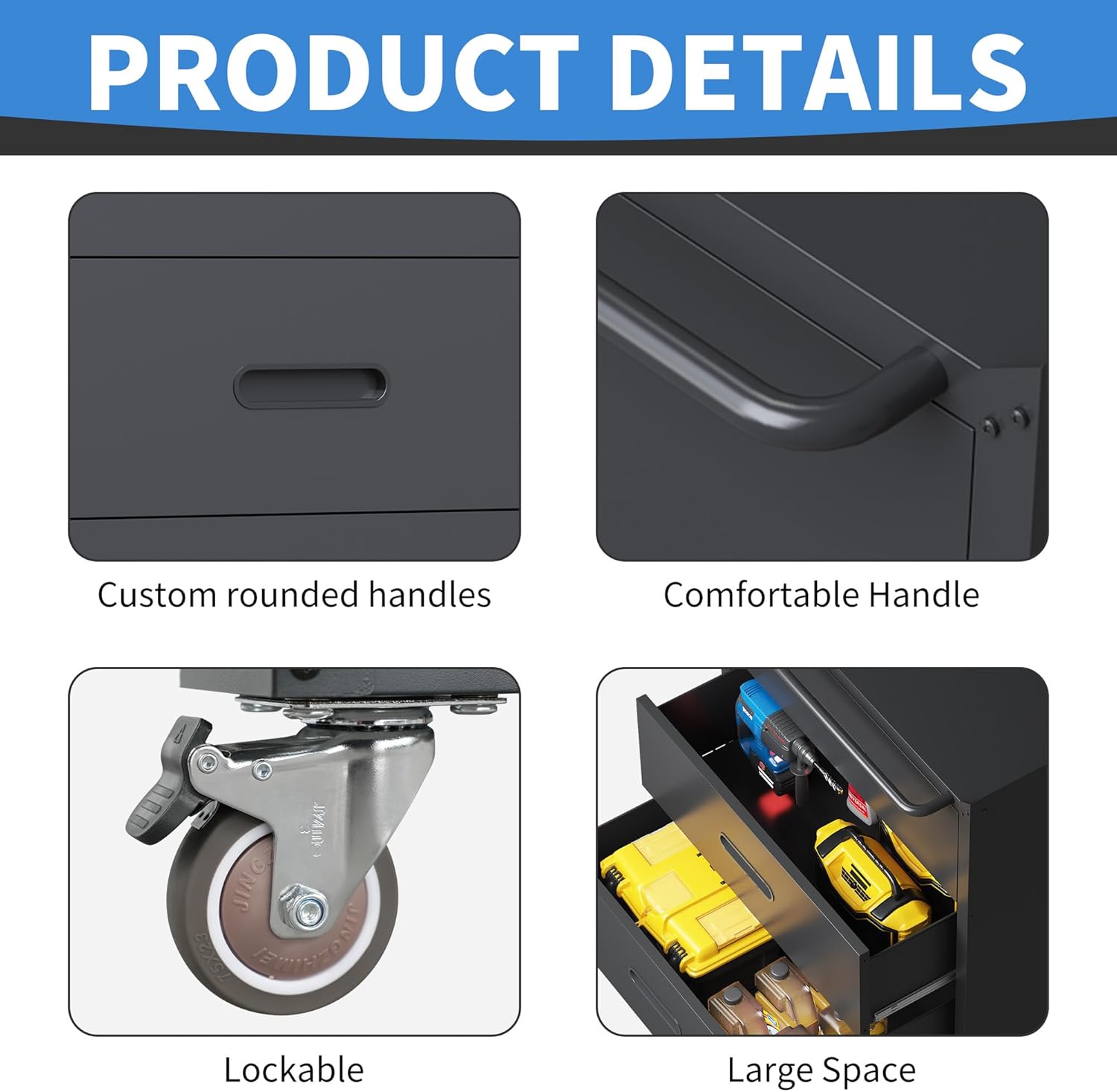 - MULTIPLE STORAGE OPTIONS: The cabinet measures 16.54"D x 29.53"W x 34.66"H. The cabinet comes with 3 large capacity and load bearing drawers, while the top of the cabinet can also be used as a workbench. It is great for storing tools in the garage.