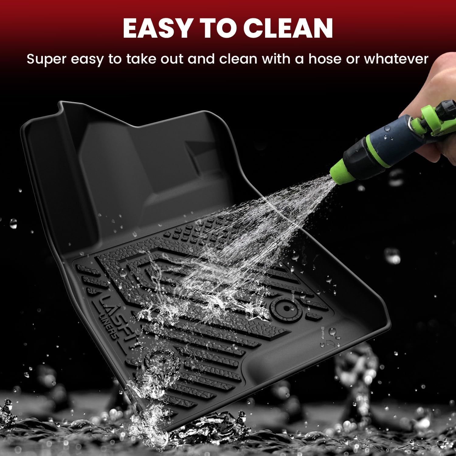 - ăDurable & Safe MaterialăLASFIT all weather floor mats for Trax use elastic TPE (Thermoplastic Elastomer), no foul odor is produced even at high temperatures, soft touch and exquisite finish. The LASFIT floor mats for cars are skid-proof and recyclable.