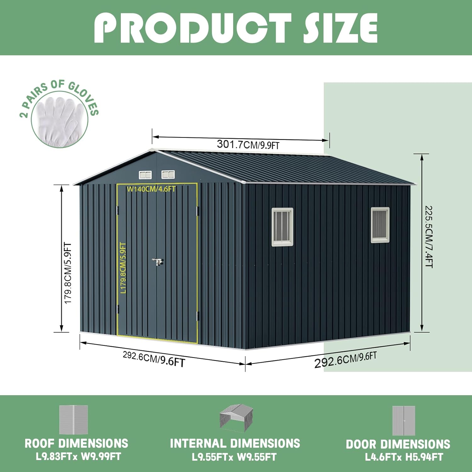 - Durable Construction: Crafted from galvanized steel, this shed is rust-resistant and weatherproof, ensuring long-lasting durability even in tough outdoor conditions.