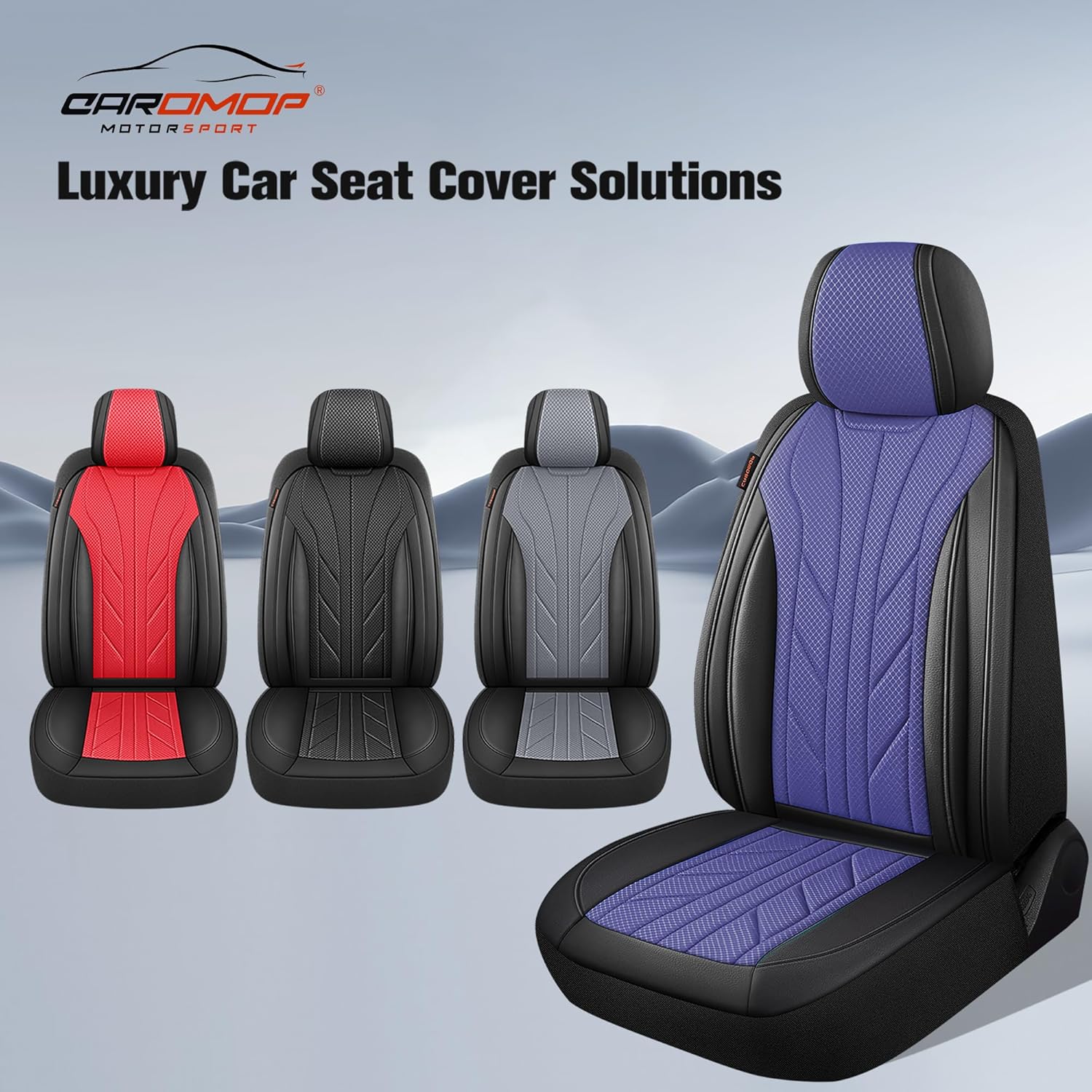 - [Motion Design]Experience the perfect blend of breathability and durability with our premium car seat cover. Featuring a center panel made of Roman check-pattern fabric, enhanced with 8mm thick high-quality foam, it offers superior ventilation, moisture-wicking, and all-day comfort. The sides are crafted from sleek and durable PU leather, with smooth stitching lines that add a touch of sophistication. Designed for the modern driver, this sporty style not only elevates your car’s interior but also delivers unmatched comfort for every journey. Stylish, practical, and made for those who truly appreciate the art of driving.