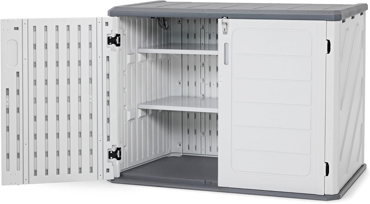 - Metal Shelves: The matching metal shelves of the plastic storage shed maximize the use of space and get different partitions for various storage needs