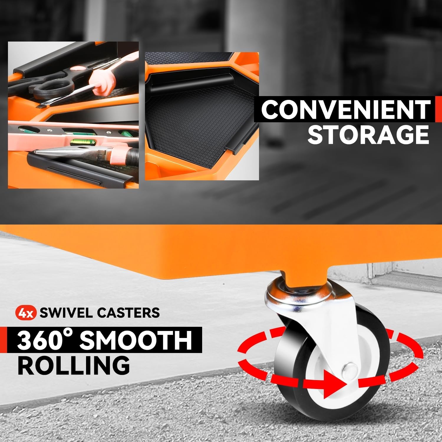 Auto Dynasty Mechanic Stool, Adjustable Rolling Pneumatic Creeper Garage Shop Seat with Tool Tray, 300 LBS Roller Seat for Workshop Auto Repair, Adjustable Height 15.7" to 21", Orange