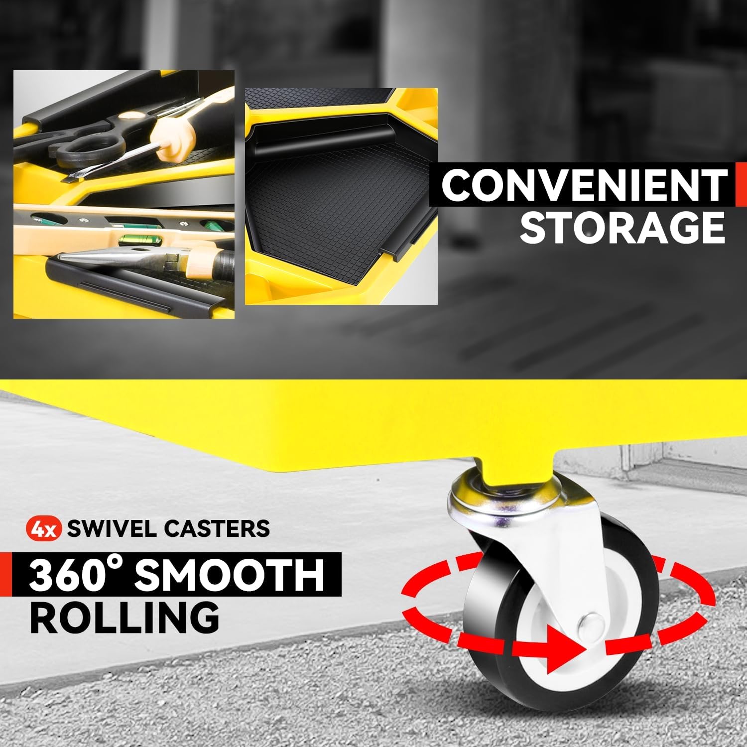 - ăEnhanced MobilityăEquipped with 4 swivel casters, this mechanic stool provides smooth and precise maneuverability around your garage, streamlining your work process.