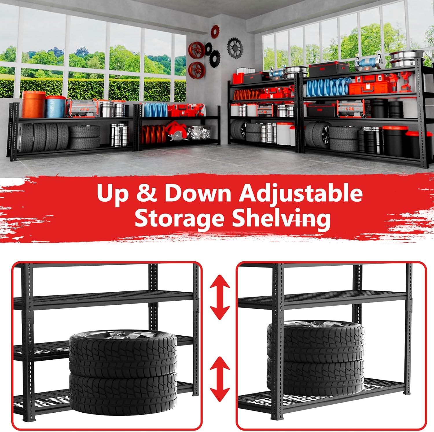 Storage Shelves 3PCS, Garage Shelving Heavy Duty 2640LBS Capacity, 48"L x 18"W x 60"H Adjustable Metal Shelving Organizer Wire Rack, 4 Tier Utility Shelf Unit for Pantry Closet Warehouse Organization