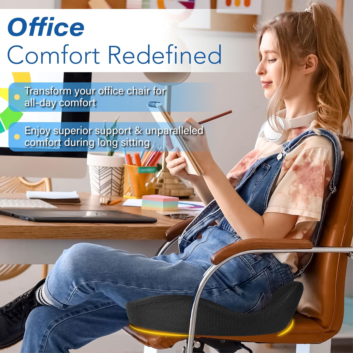 - Ergonomic Seat Cushion & Optimal Driving Comfort - Upgraded “U”shaped cushion is specially designed for comfy and health. Larger and thicker, perfectly cradles your butt, provides comprehensive support. High-density memory foam car seat cushion relieves sciatica, lower back, tailbone pain