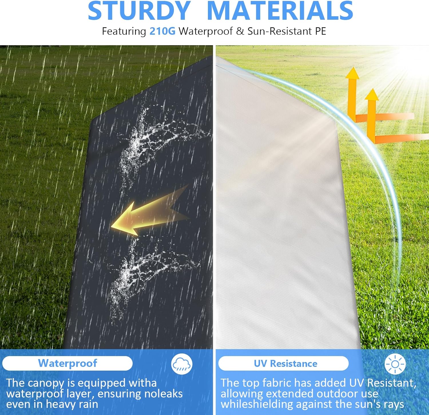 - STABILITY REINFORCEMENTS-The larger modols (10x20ft, 13x21ft) include enhanced structural support with eight legs and reinforced top bars. Additionally, 420D Oxford sandbags and wind-resistant ropes with stakes ensure stability, safeguarding your carport under diverse weather situations. Note: Not recommended for snow conditions