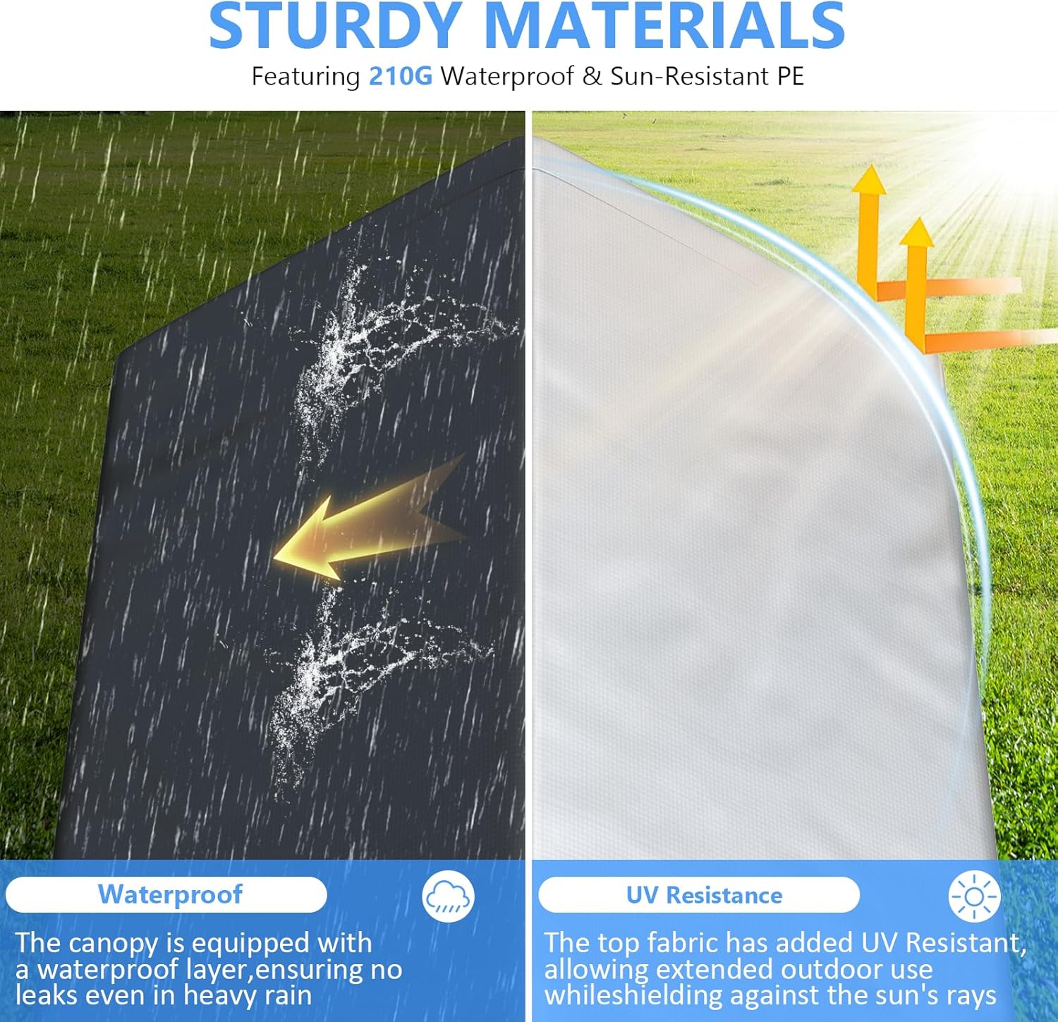 - 【Stability Reinforcements】- The larger types(10x20ft, 13x21ft) include enhanced structural support with eight legs and reinforced top bars. Additionally, 420D Oxford sandbags and wind-resistant ropes with stakes ensure stability, safeguarding your outside storage shed under diverse weather situations. NOTES: Not recommended for snow conditions