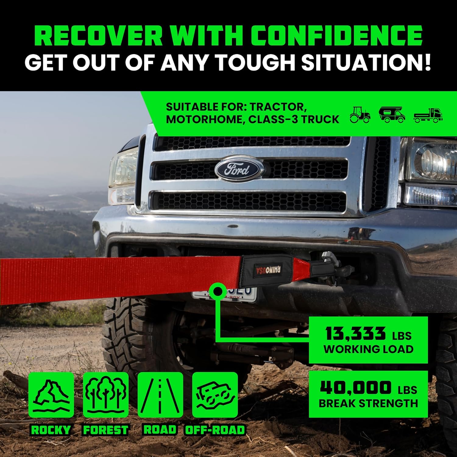 - USED FOR FLAT RECOVERY - Ideal for Towing or Pulling Vehicles that are Stuck on Flat Surfaces, Providing a Reliable Solution for Recovering Vehicles Without Damaging Them.