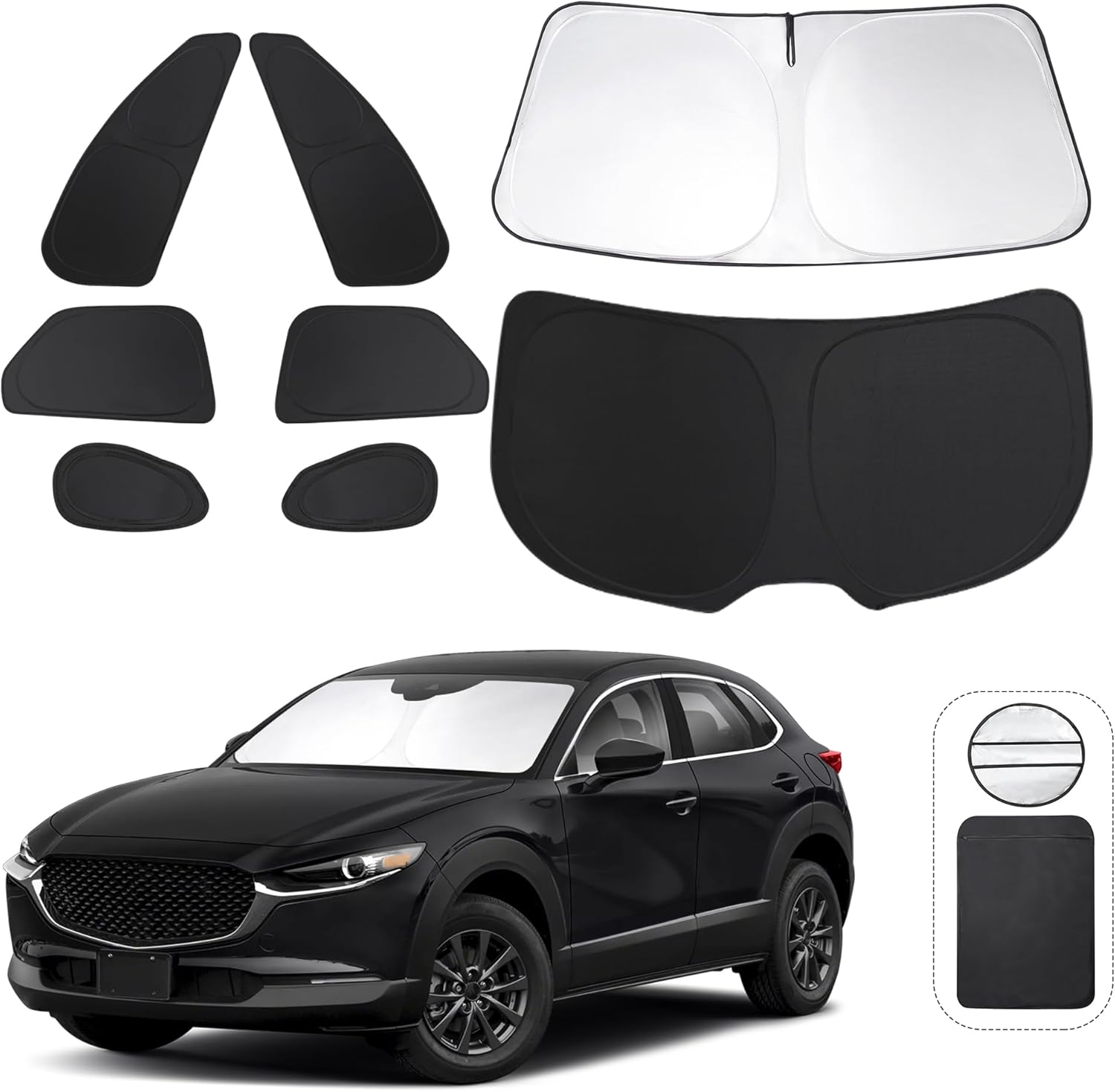 TINGLU 8PCS Window Shades for Mazda CX-30 2019-2024 2025 Accessories Car Side Full Windows Rear Triangular Windshield Sun Shade Sun UV Rays & Privacy Protection for Camping,Napping,and Relaxing