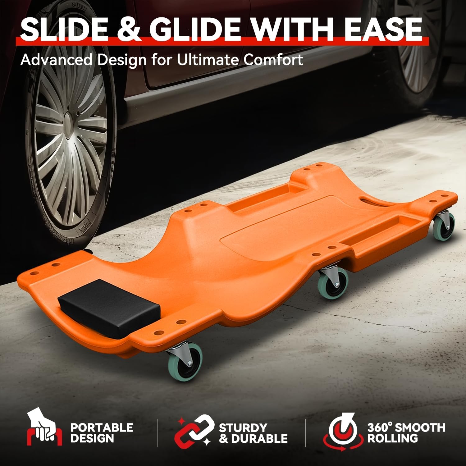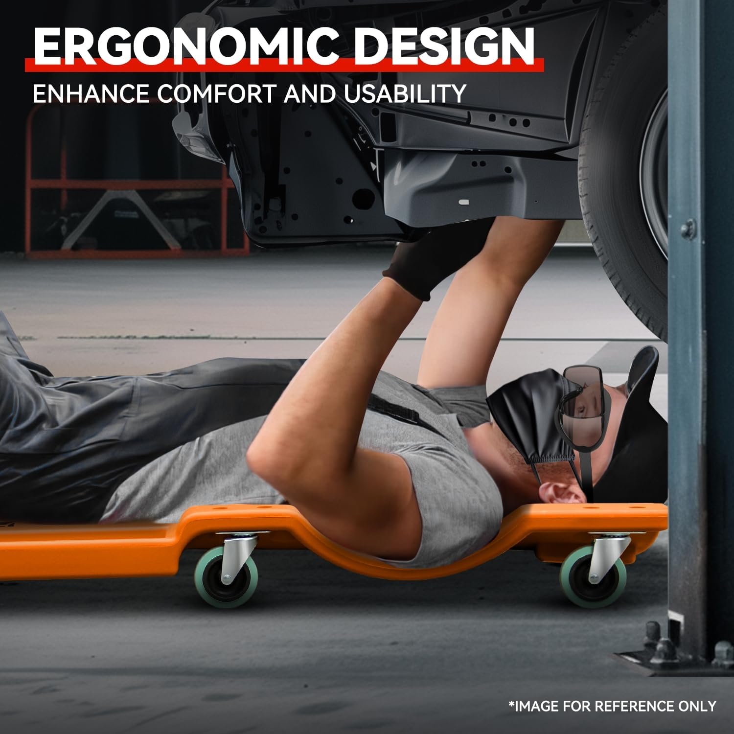 Auto Dynasty 40 Inches Mechanic Creeper, Automotive Garage Repair Low Profile Under Car Rolling Creeper with Padded Headrest, Plastic, Orange