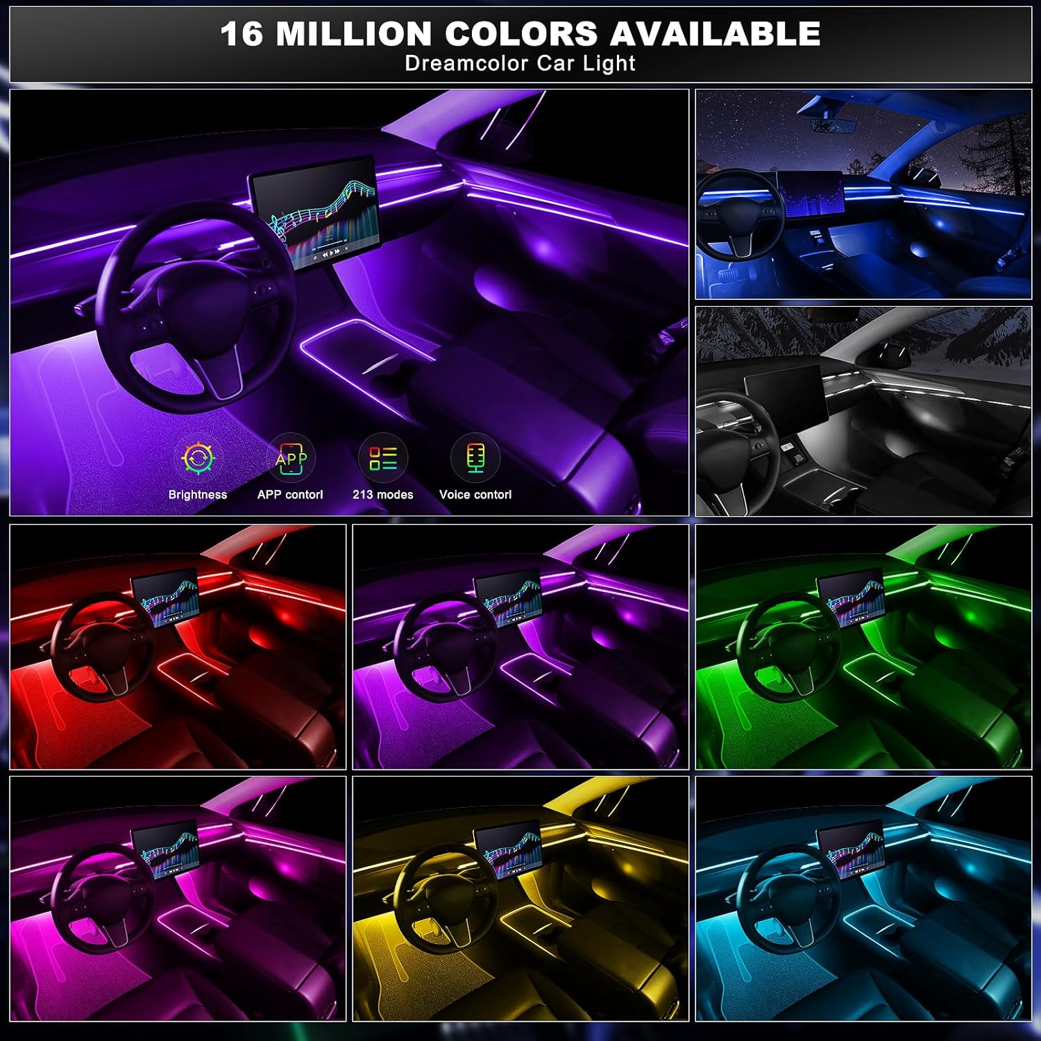 - ă16 Million Colors ăThe RGB Acrylic Interior LED Strips Lighting built-in RGB color mode looks like a regular bouncing, dancing and flashing bar. If you don't want a blinking mode, you can also choose a static color mode in the app. MAODANER also supports voice control mode and more, bringing you more driving fun