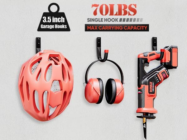 - Simple Design, Powerful Performance: Nacial garage hooks heavy duty combine simple design with ultimate durability, crafted from premium heavy-duty solid steel with rubber tip. These hooks support an impressive load capacity of up to 70 âtwice that of standard hooks. Each hook features a 3-layer reinforced plate, shaped through over 20 precision steps and strengthened at high temperatures for 4 hours for superior load capacity. Nacial Simple DesignâGreat Hooks, Greater Performance