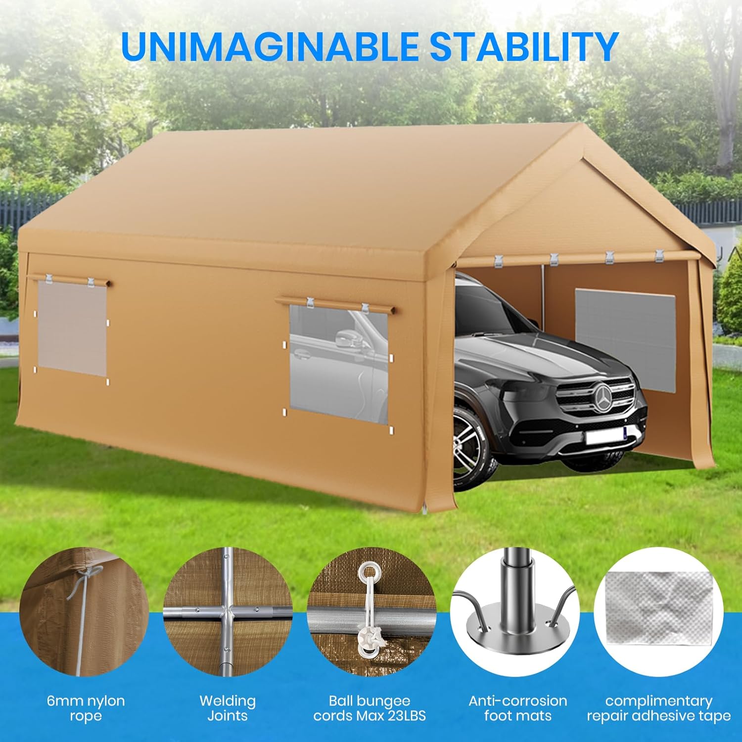 - Heavy Duty & Durable Construction:This 12x20 FT portable garage carport features a robust steel frame and a heavy-duty waterproof canopy, ensuring reliable protection for your vehicles, boats, and RVs. The high-quality materials are designed to withstand harsh weather conditions, including UV rays, rain, and wind.