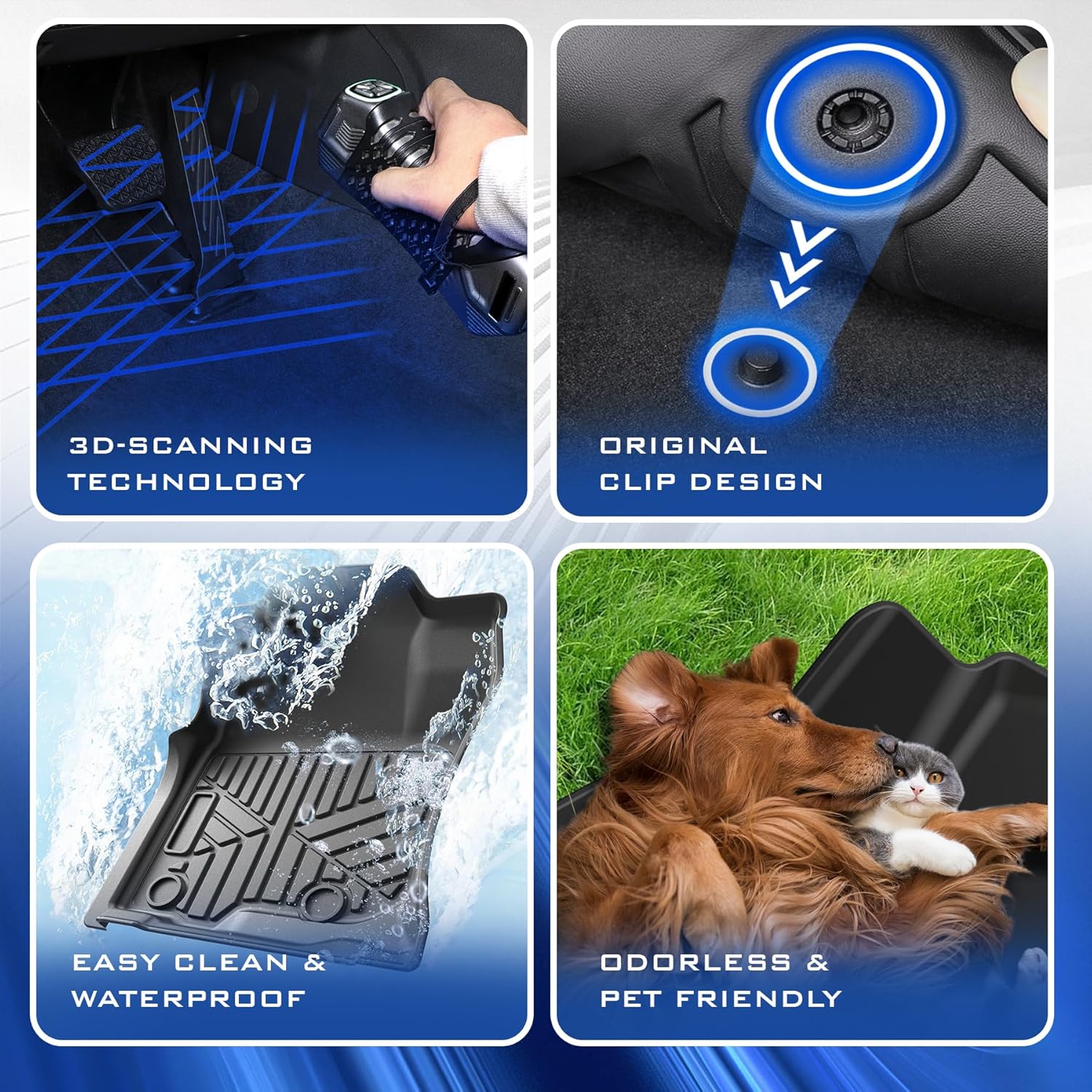 Floor Mats for 2019-2024 2025 Chevy Silverado 1500/GMC Sierra 1500 & 2020-2025 Chevrolet Silverado/Sierra 2500/3500 HD Crew Cab, Fit for 2nd Row with Underseat Storage Box, Front Bucket Seat