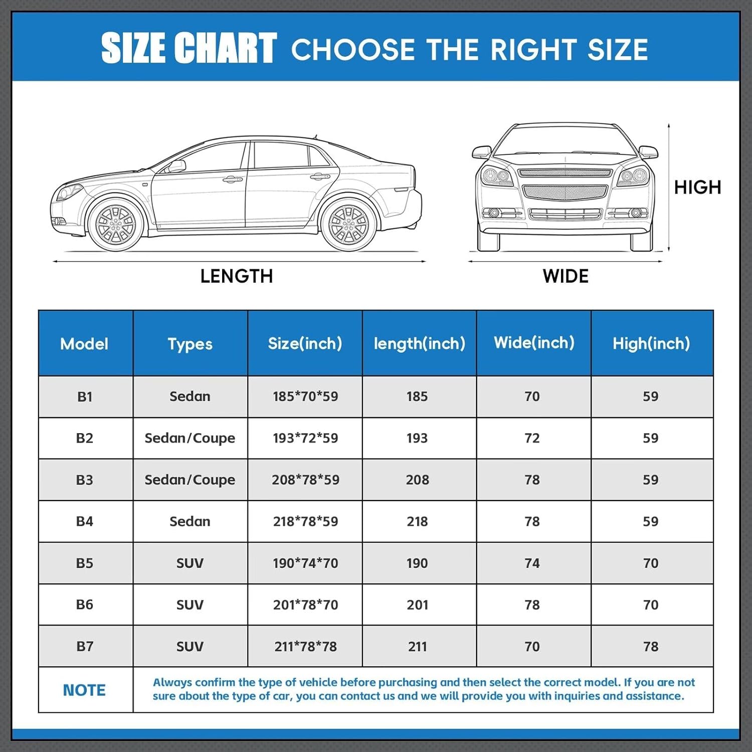 - 【Size Selection】- Our B3 model is designed for sedans and coupe 194 inch to 208 inch in length. (Please note: it does not fit hatchbacks ). It is compatible with a variety of popular car models, such as Dodge Charger, Challenger, Lincoln Continental, Genesis G90, Porsche Panamera, Chrysler 300, Pontiac Bonneville, BMW 5/6/7 Series and other cars.