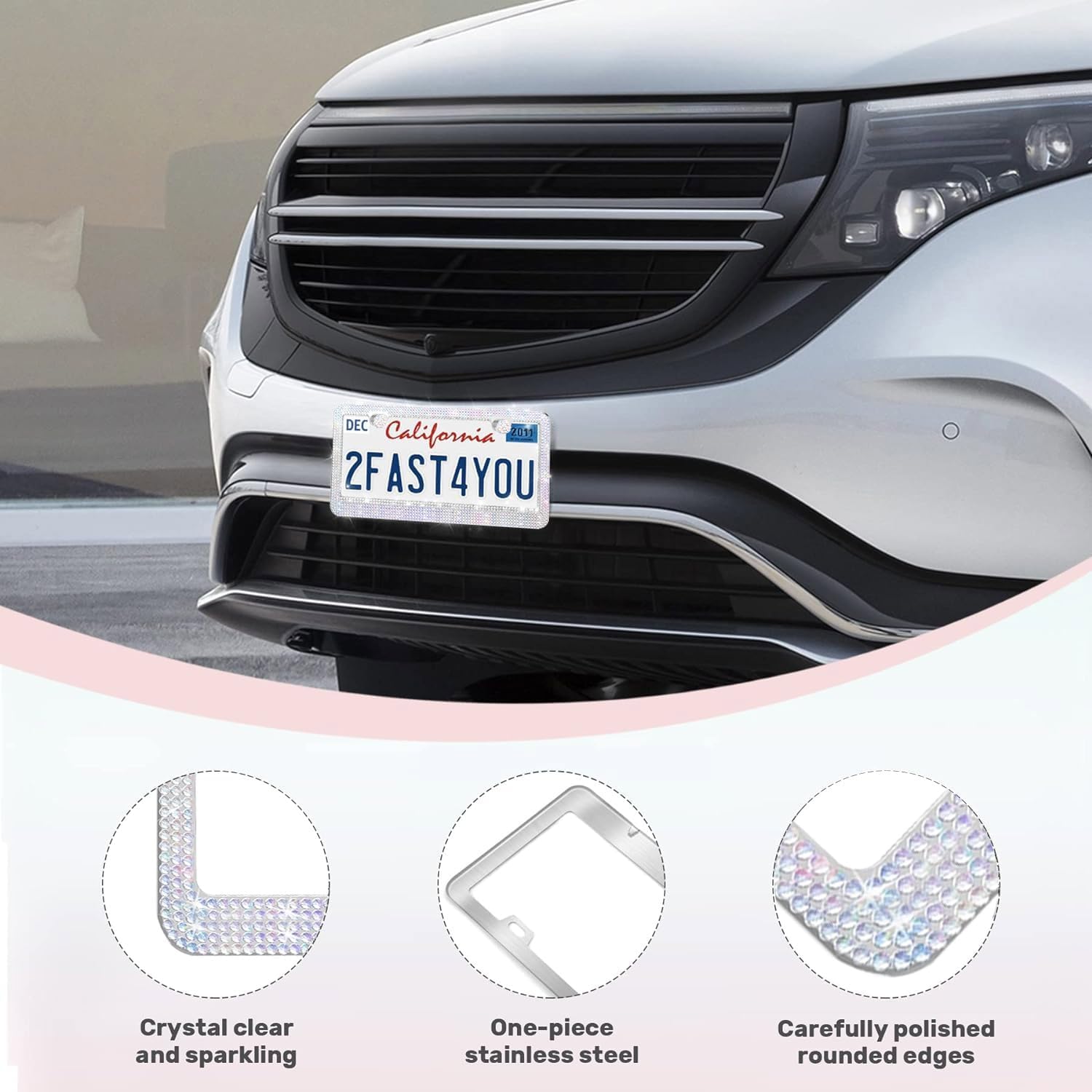 - 【Super Sparkly License Plate Frames】: Why go for boring plain license plate frames when you can go super fab with a car plate frame with actual rhinestones in it? Give your car a new cool look now! 2 Pack license plate frames for women are sure to make your car catch everyone’s eyes on the road