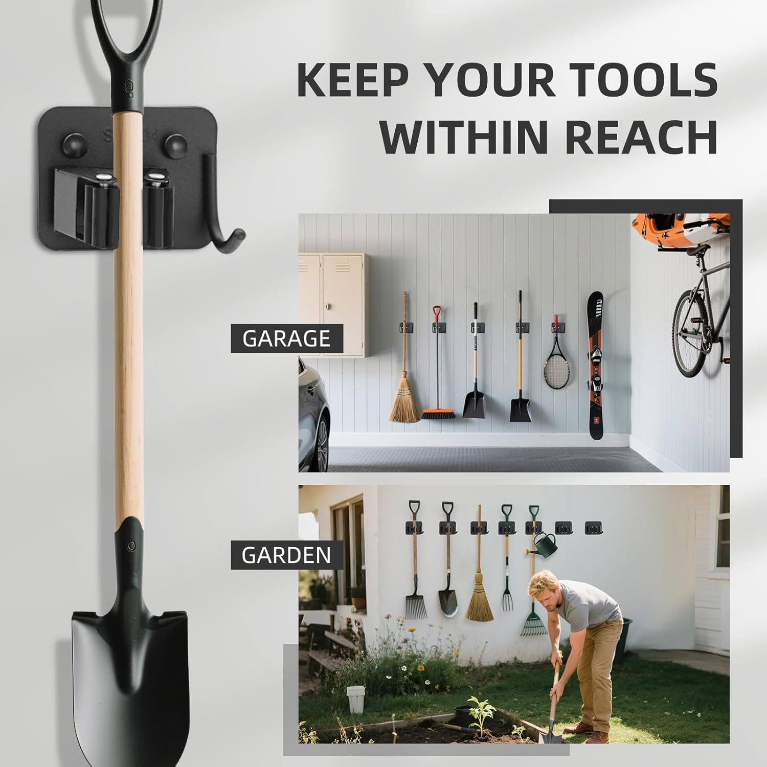 - ð§¹ãKeep Your Space Tidy & OrderlyãAenfaiy broom mop holders with hooks are your go-to solution for reclaiming order in your life. If youâve been struggling with how to store your cleaning supplies, garden tools, bathroom essentials, kitchen tools, or garage equipment, look no further! With this 4-pack wall mount broom hanger to keep your tools within reach while enjoying a clean, orderly home!