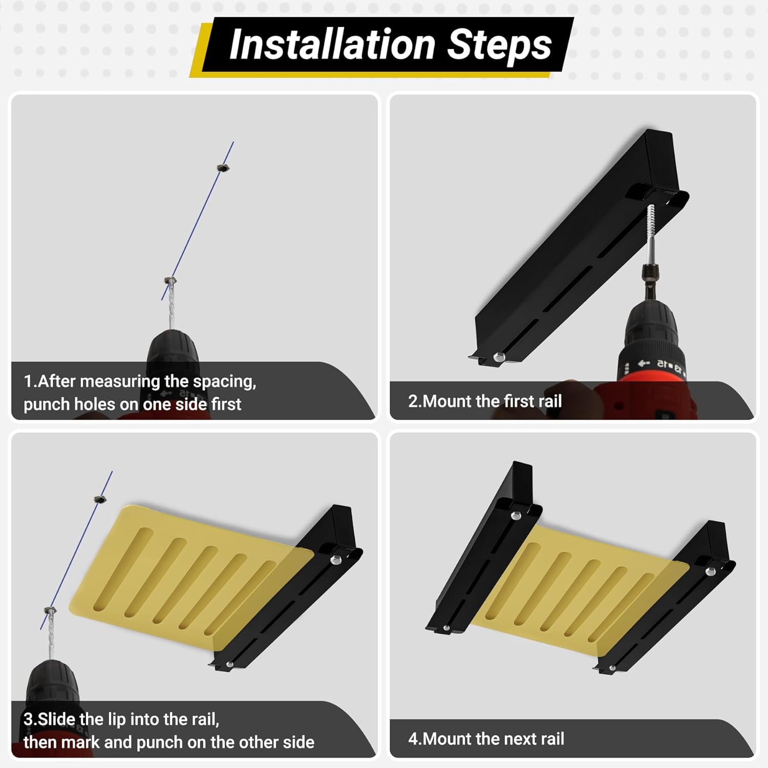 - Premium Material Quality: Made of robust, heavy-duty steel, our garage overhead storage racks are built to last. The powder-coated surface effectively resists corrosion.