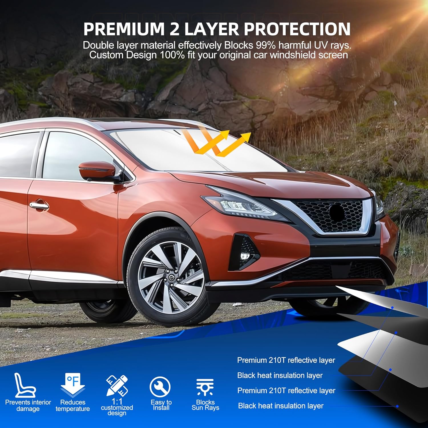 Windshield Sun Shade for Ni-ss-an Murano 2015-2024 Foldable Sunshade Custom Fit Front Window Car Interior Accessories Protector Blocks UV Rays
