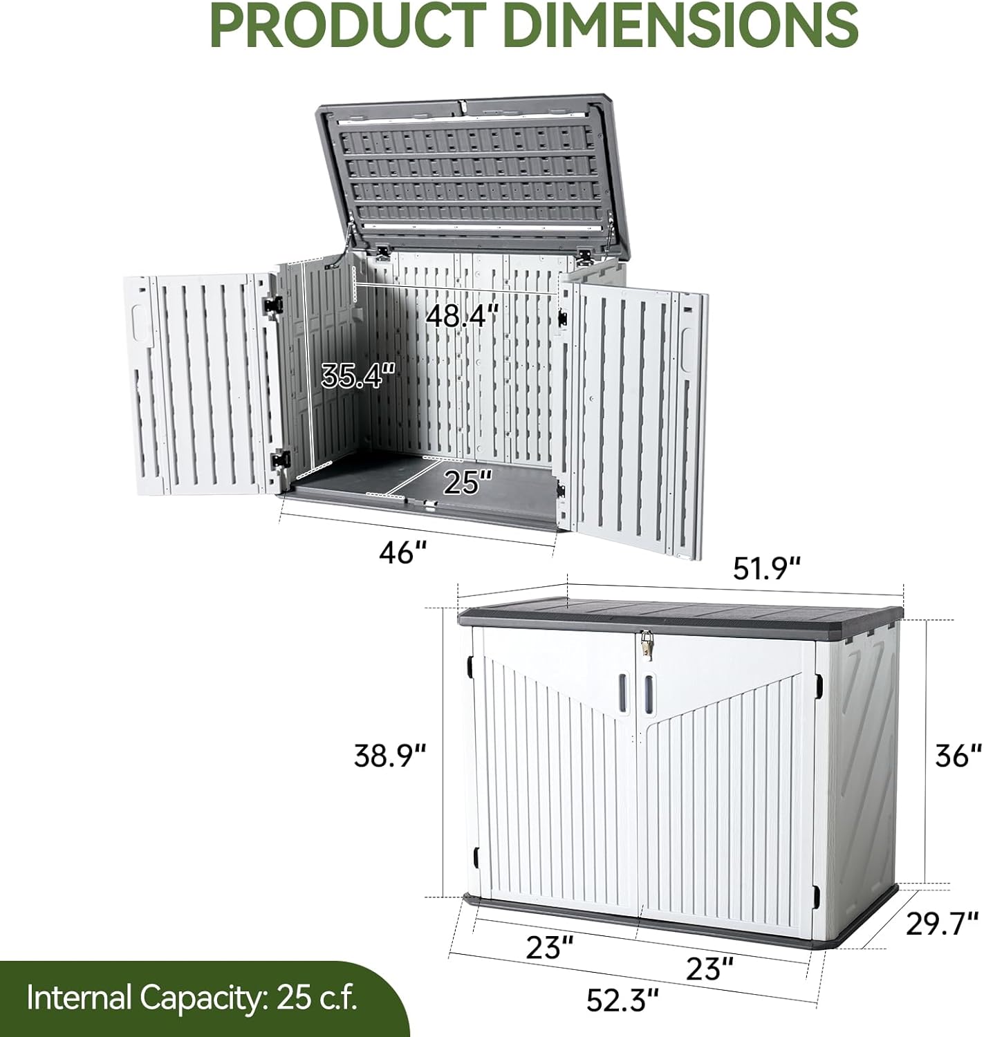 Aoxun 35 Cu.Ft Outdoor Storage Shed, Waterproof Horizontal Resin Cabinet for Trash Cans, Lawn Mowers, Generators, and Garden Tools, White