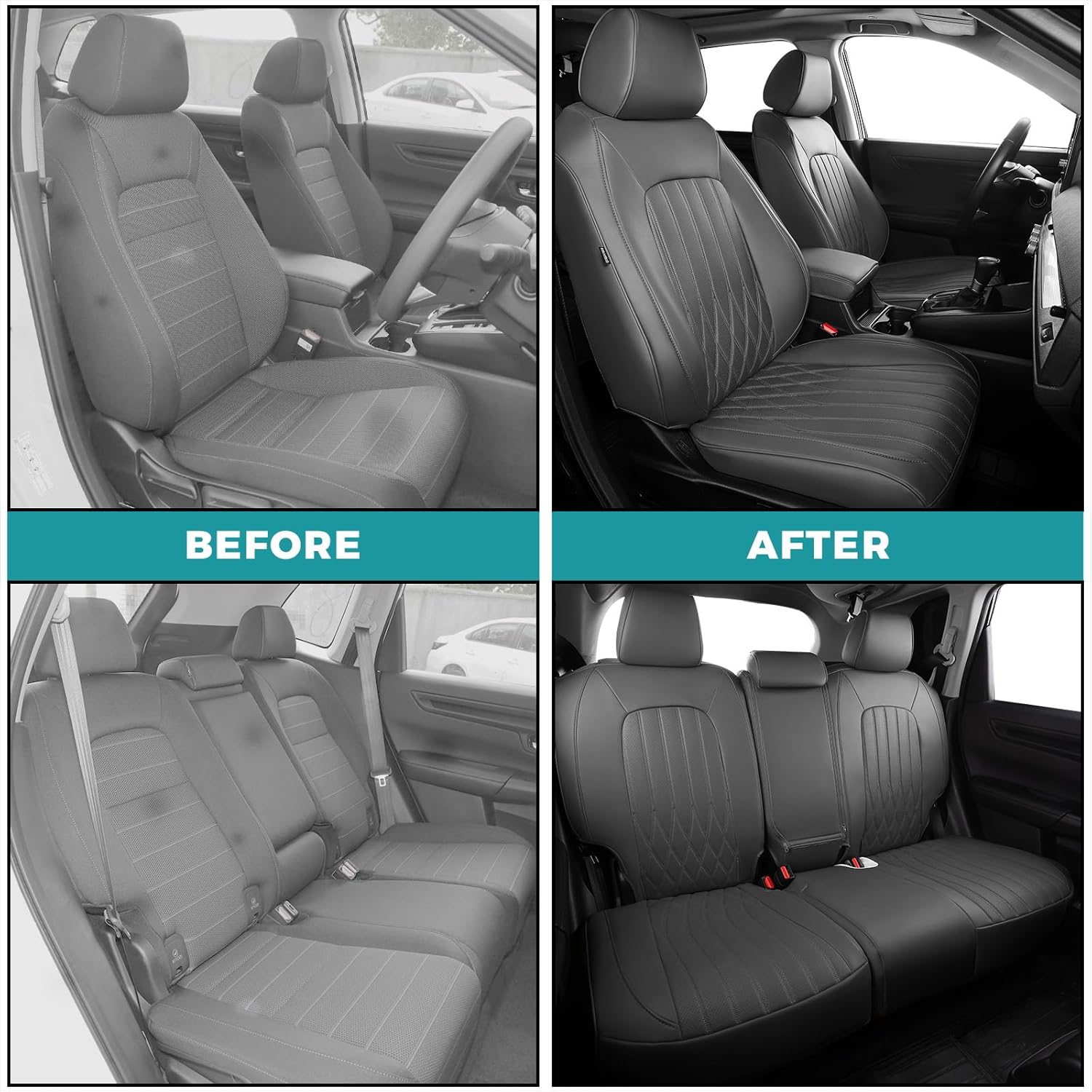 - Customized to Fit Better- Seat covers for CRV are meticulously measured and expertly crafted by hand to ensure a perfect fit like a glove for your car seats. These custom seat covers extend over the front seat armrests and wrap around the back of the seats, providing a more precise fit than generic covers and a more premium look
