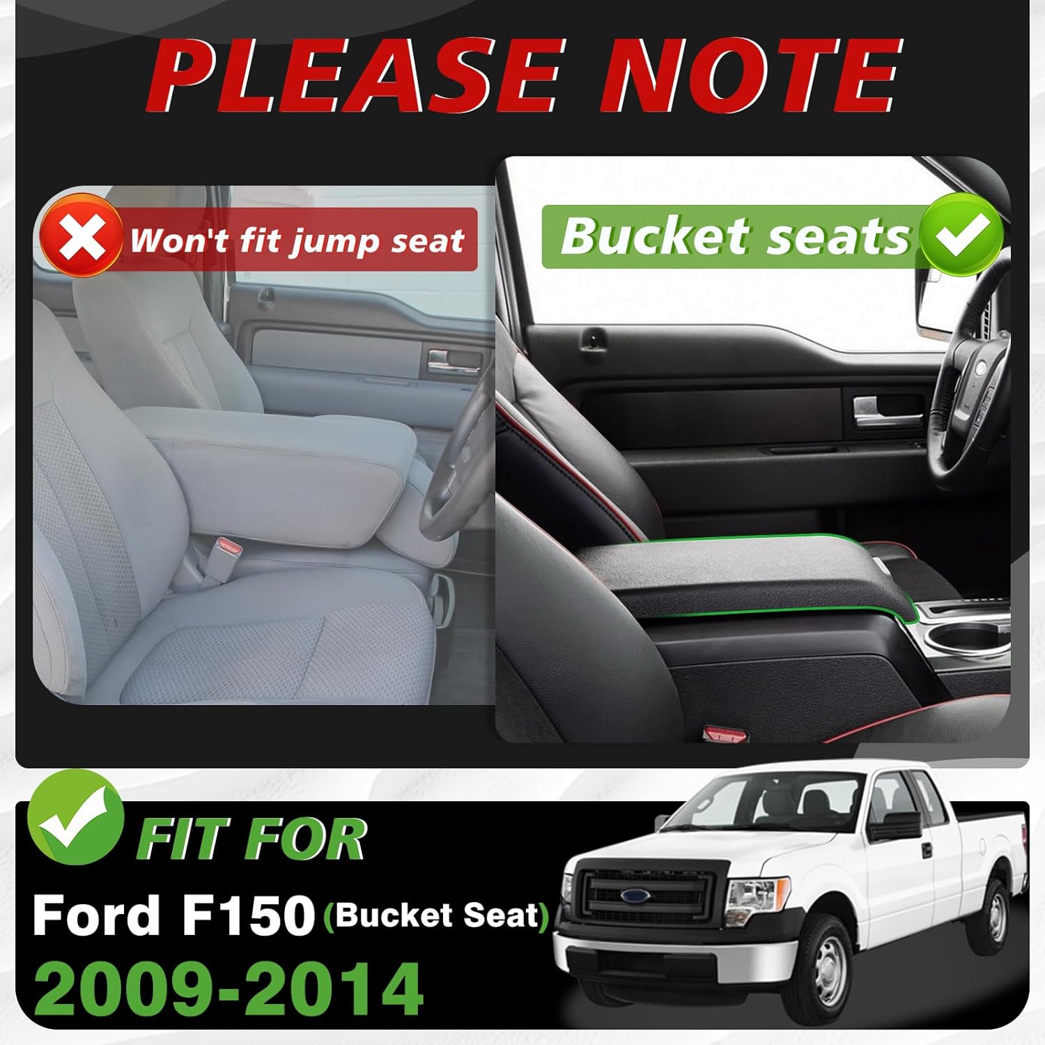 Muslogy Center Console Armrest Cover Compatible with Ford F-150 F150 2009-2014 Comfort Armrest Pad Arm Rest Cushion Vegan Leather Protector Regular Thick(Bucket Seat ONLY)