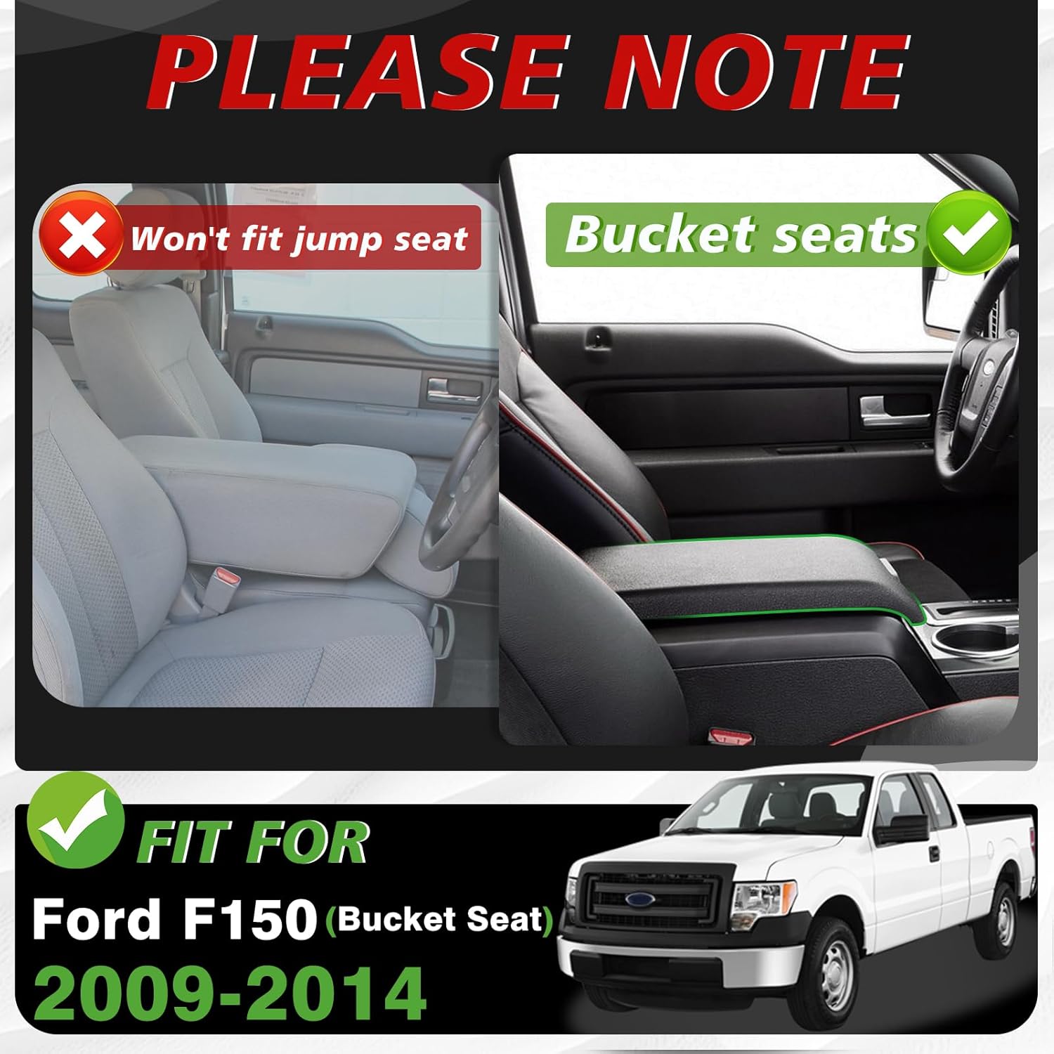 Muslogy Center Console Armrest Cover Compatible with Ford F-150 F150 2009-2014 Comfort Armrest Pad Arm Rest Cushion Vegan Leather Protector 1-Inch Extra Thick(Bucket Seat ONLY)