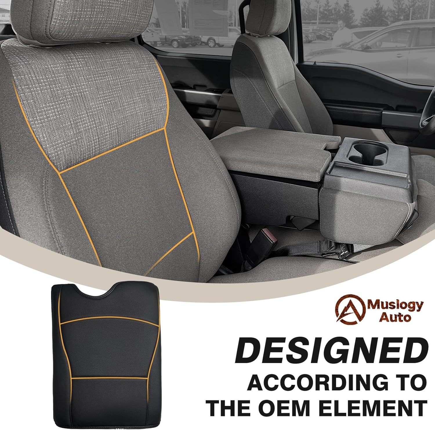 Muslogy Center Console Armrest Cover Compatible with Ford F-150 F150 2015-2024 2025 Comfort Armrest Pad Arm Rest Cushion Vegan Leather Protector Regular Thick(Jump Seat ONLY)