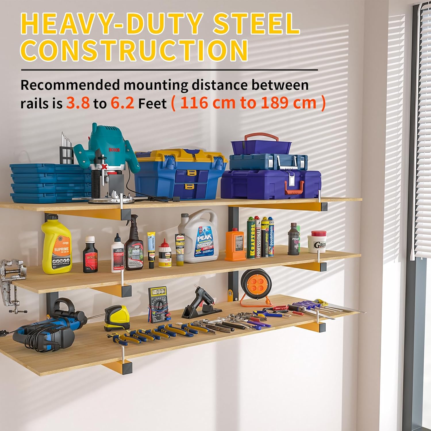 - 6-LAYER WALL-MOUNTED WOOD RACK: Heavy Duty Wood Storage Shelves for organizing the garage is welded with industrial precision and equipped with drywall anchors and high-strength screw kits. The wooden storage rack orange arm is 16 inches long. Suitable for various walls, such as concrete walls, wooden walls, red brick walls, etc.