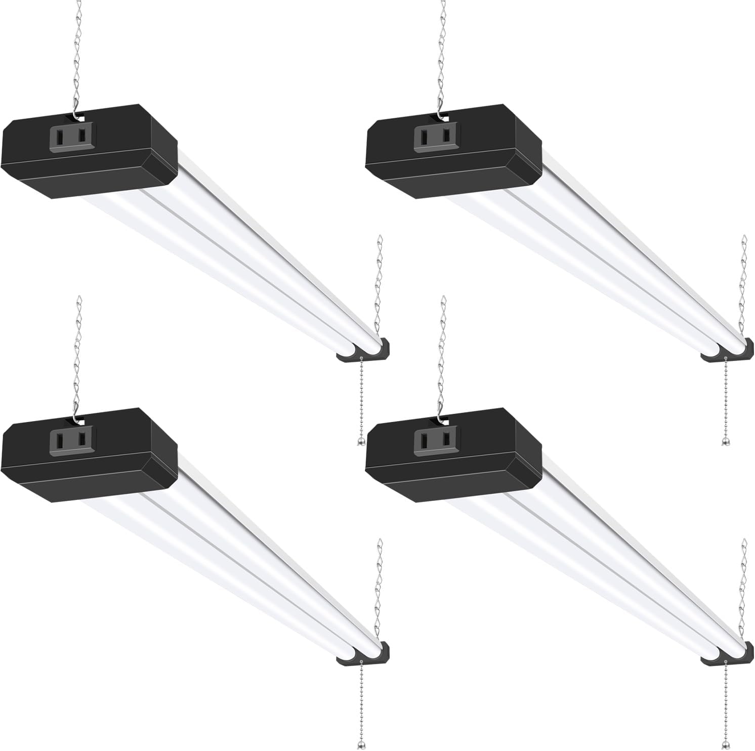 hykolity 4 Pack 4FT LED Shop Light, Linkable Utility Shop Lights, 42W, 5000K Daylight White Shop Light for Garages, Workshops,Hanging or FlushMount, Power Cord with Pull Chain Switch, Balck, ETL