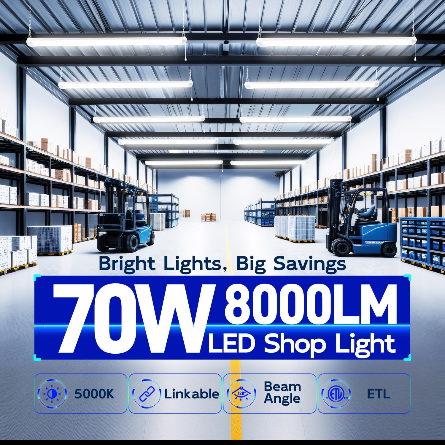 - ✅ Super Bright - Our 4ft utility light fixture feature 8000 lumens brightness at 5000K Daylight White by using only 70W, That is a staggering LED Efficiency of 114 lm/w! Excellent replacement of conventional 300w fluorescent fixture. Energy Savings of up to 70%.