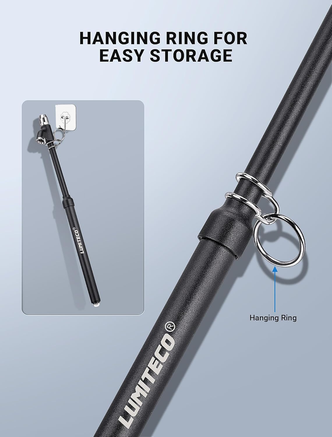 - 【EXTENDED REACH DUAL HEAD】LUMITECO 12" pencil-style pressure gauge is designed with an integrated straight foot air chuck and 30° reverse chuck. Perfect for dual wheels and other hard-to-reach valves. Also comes with 4 extra valve stem caps for replacement, your great choice for checking tire pressure and a fantastic Father's Day gift.
