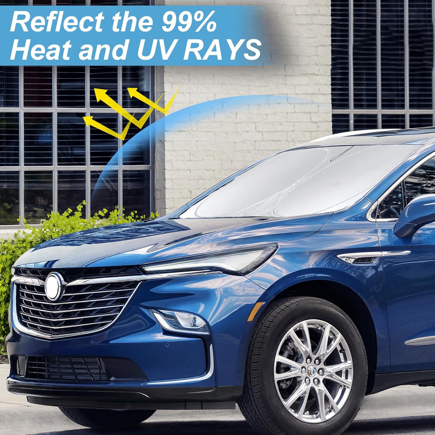 - [CUSTOM-FIT FRONT WINDSHIELD SUNSHADE] Automotive windshield sun shade is Specifically designed,which for 2018-2024 2025 Buick Enclave Accessories. We have several size of car sunshade. Please measure your car size and refer to our size before your purchase. Once installed it won't have gaps, sags or slumps like other car sun shade windshield