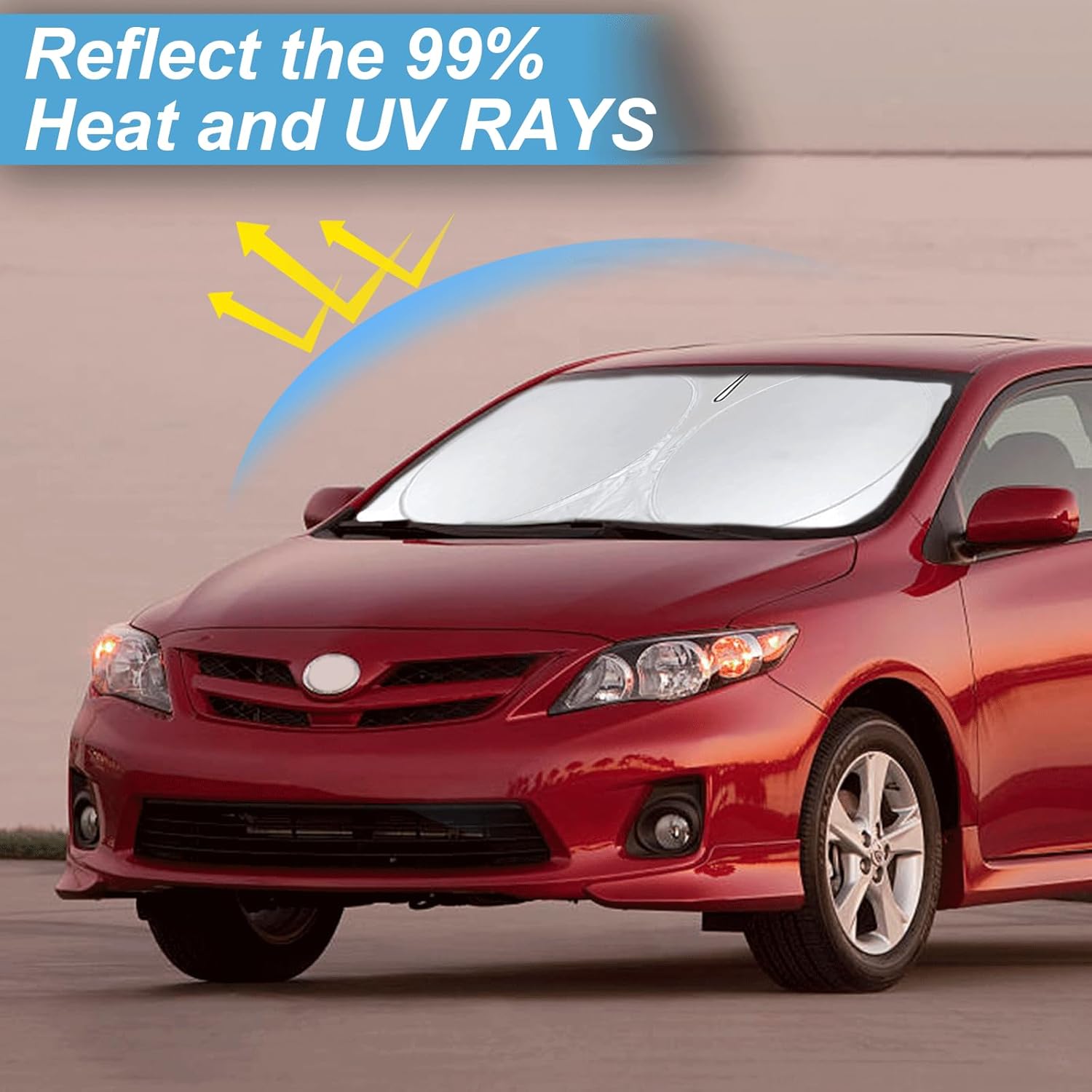 - [CUSTOM-FIT FRONT WINDSHIELD SUNSHADE] Automotive windshield sun shade is Specifically designed,which for 2009-2012 2013 Toyota Corolla Hatchback Sedan Accessories. We have several size of car sunshade. Please measure your car size and refer to our size before your purchase. Once installed it won't have gaps, sags or slumps like other car sun shade windshield