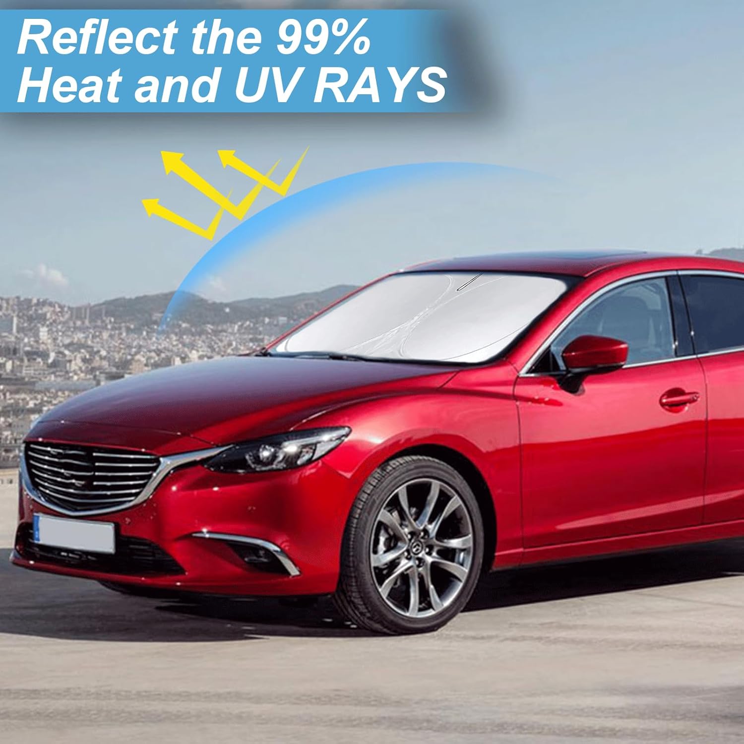 - [CUSTOM-FIT FRONT WINDSHIELD SUNSHADE] Automotive windshield sun shade is Specifically designed,which for Mazda 6 2014-2021 Mazda6 accessories. We have several size of car sunshade. Please measure your car size and refer to our size before your purchase. Once installed it won't have gaps, sags or slumps like other car sun shade windshield