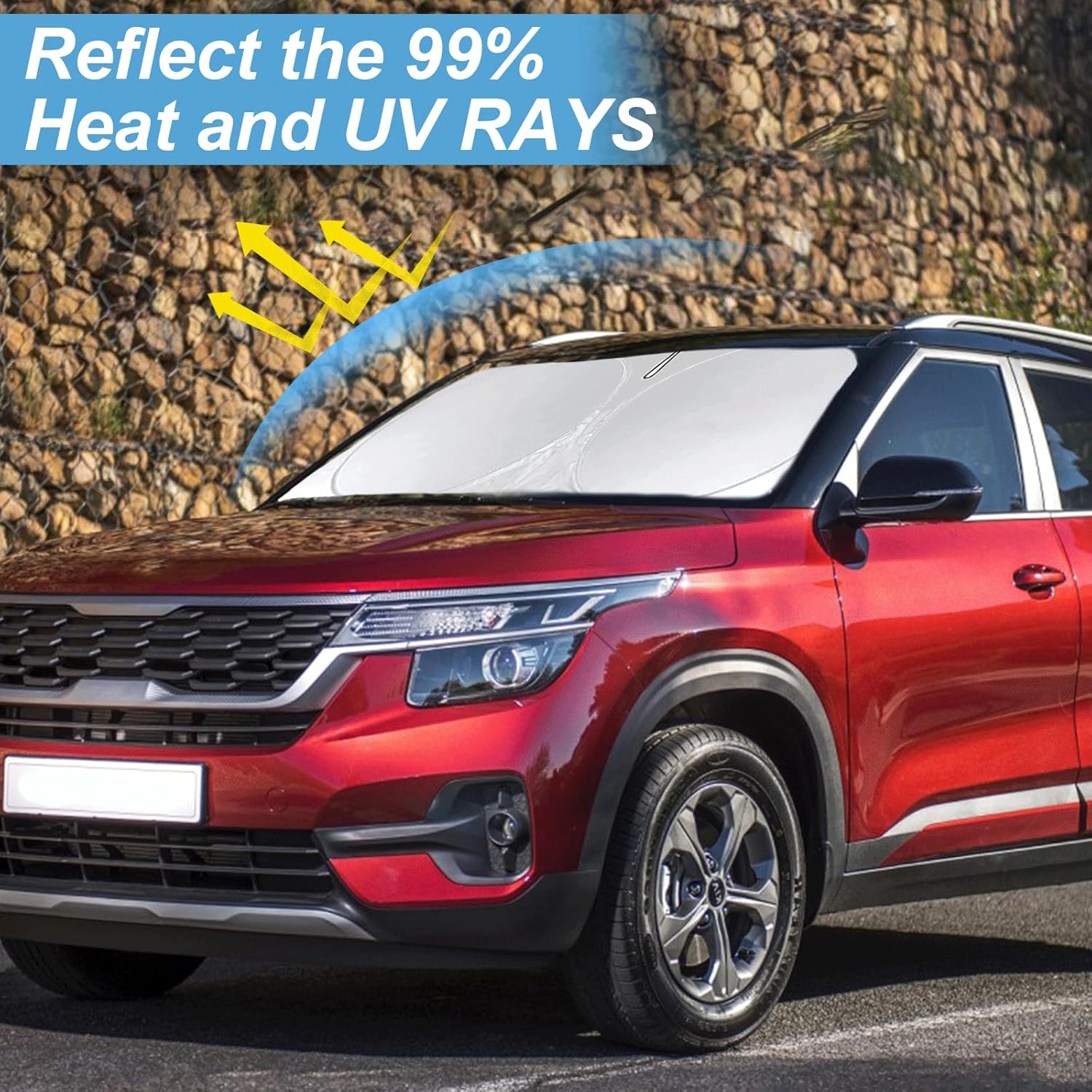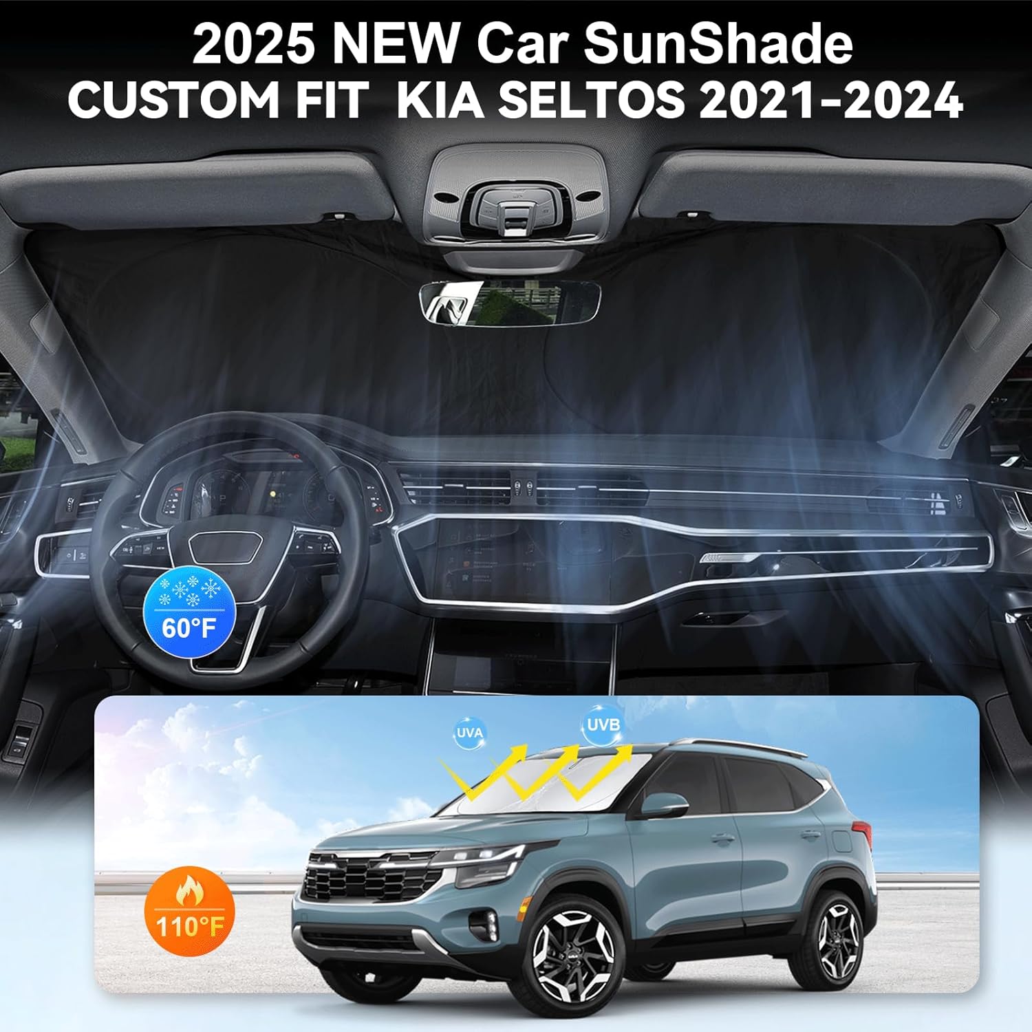 Custom Fit Seltos Windshield Sunshade for 2021-2024 2025 2026 Kia Seltos Front Window Shades Cover for Windshield Sun Visor Protector 210T Reflector Blocks UV Rays Cooler Car Accessories