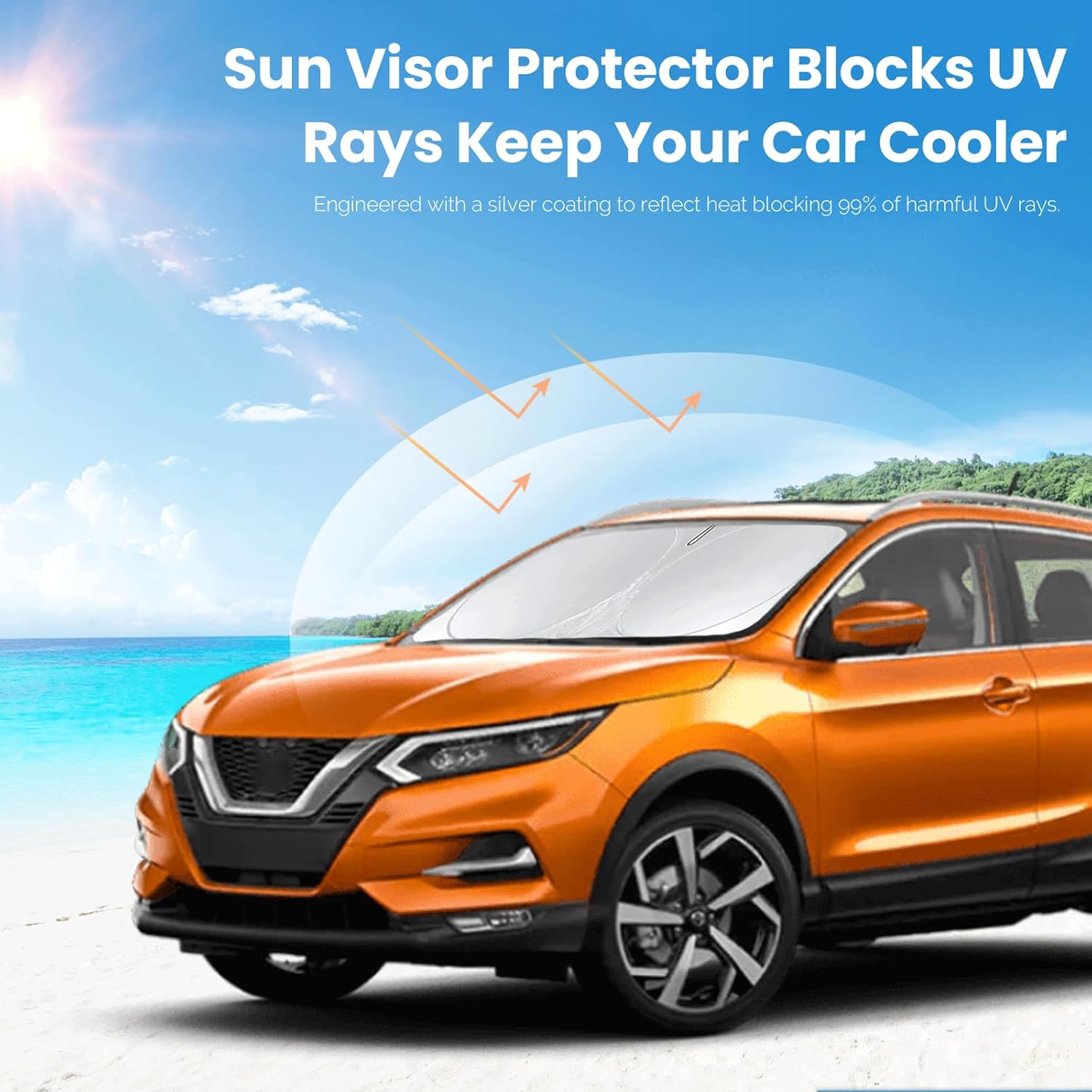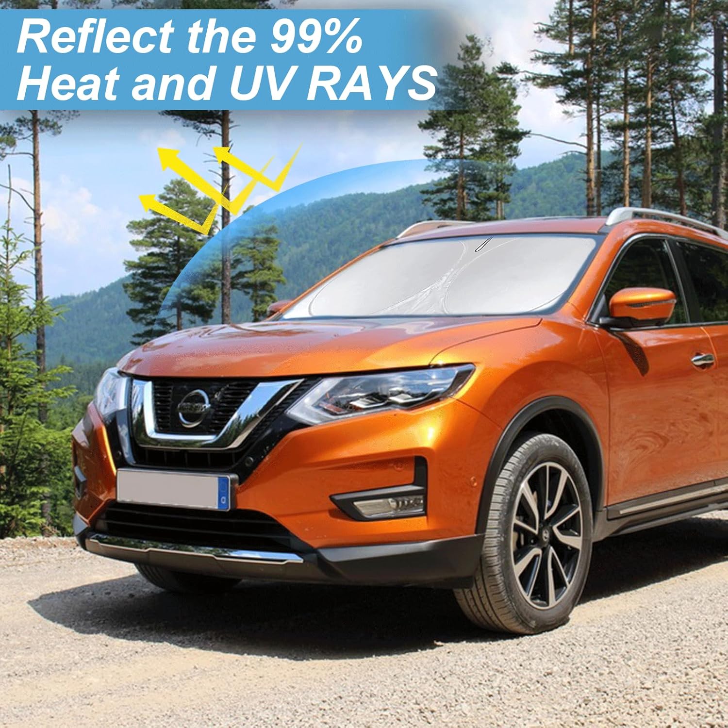 - [CUSTOM-FIT FRONT WINDSHIELD SUNSHADE] Automotive windshield sun shade is Specifically designed,which for 2017-2024 Nissan Rogue Sport accessories. We have several size of car sunshade. Please measure your car size and refer to our size before your purchase. Once installed it won't have gaps, sags or slumps like other car sun shade windshield