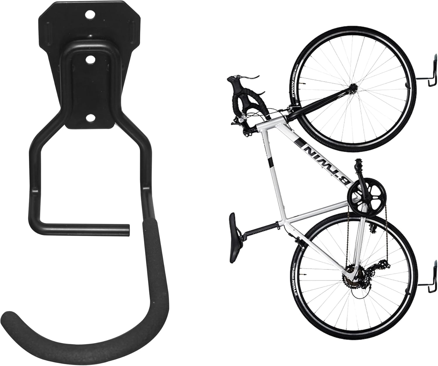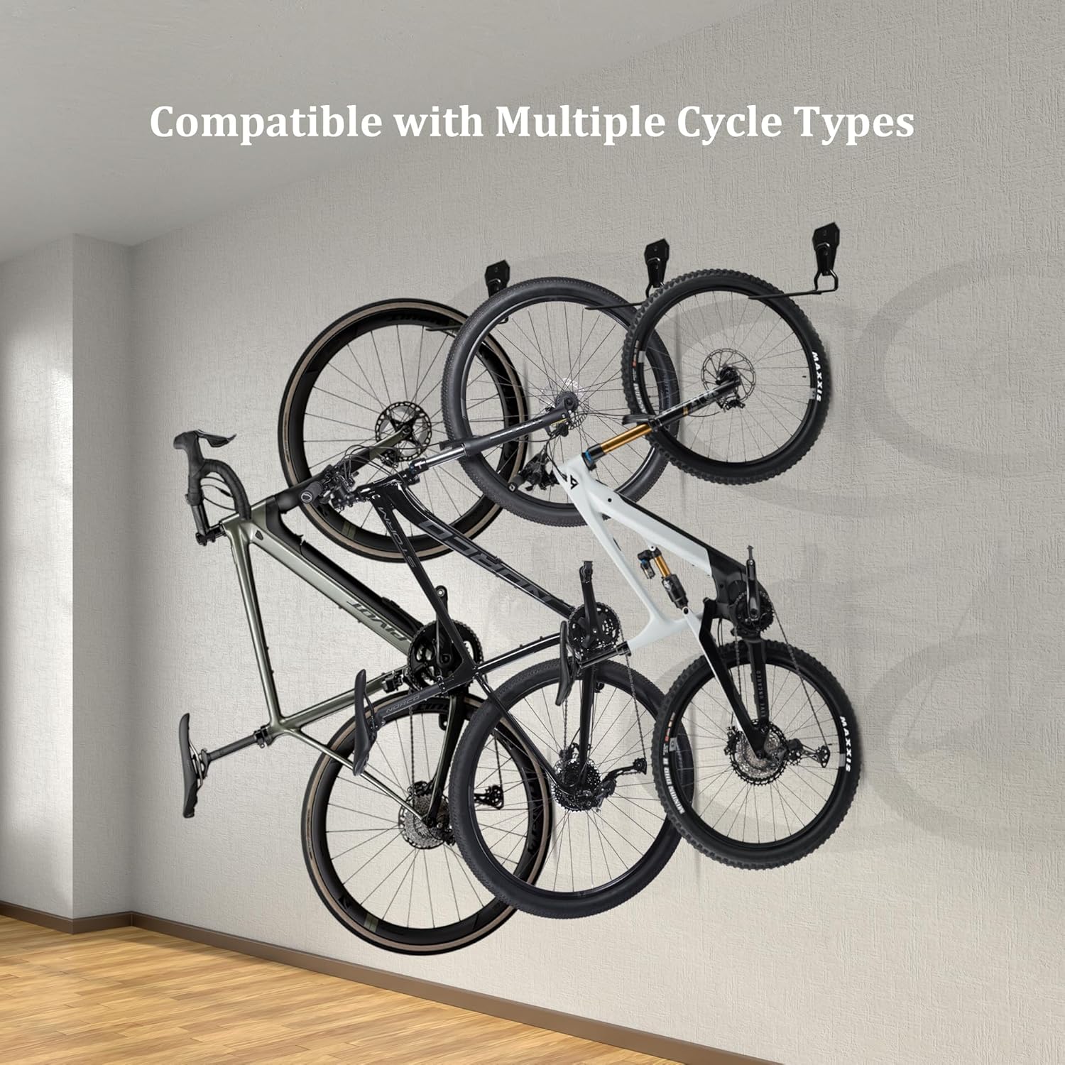 Bike Rack Wall Mount Garage Bike Hook Storage Hanger Space Saving Vertical Bike Rack Organization for Road/Mountain/Folding Bike, Holds Up to 77 Lbs