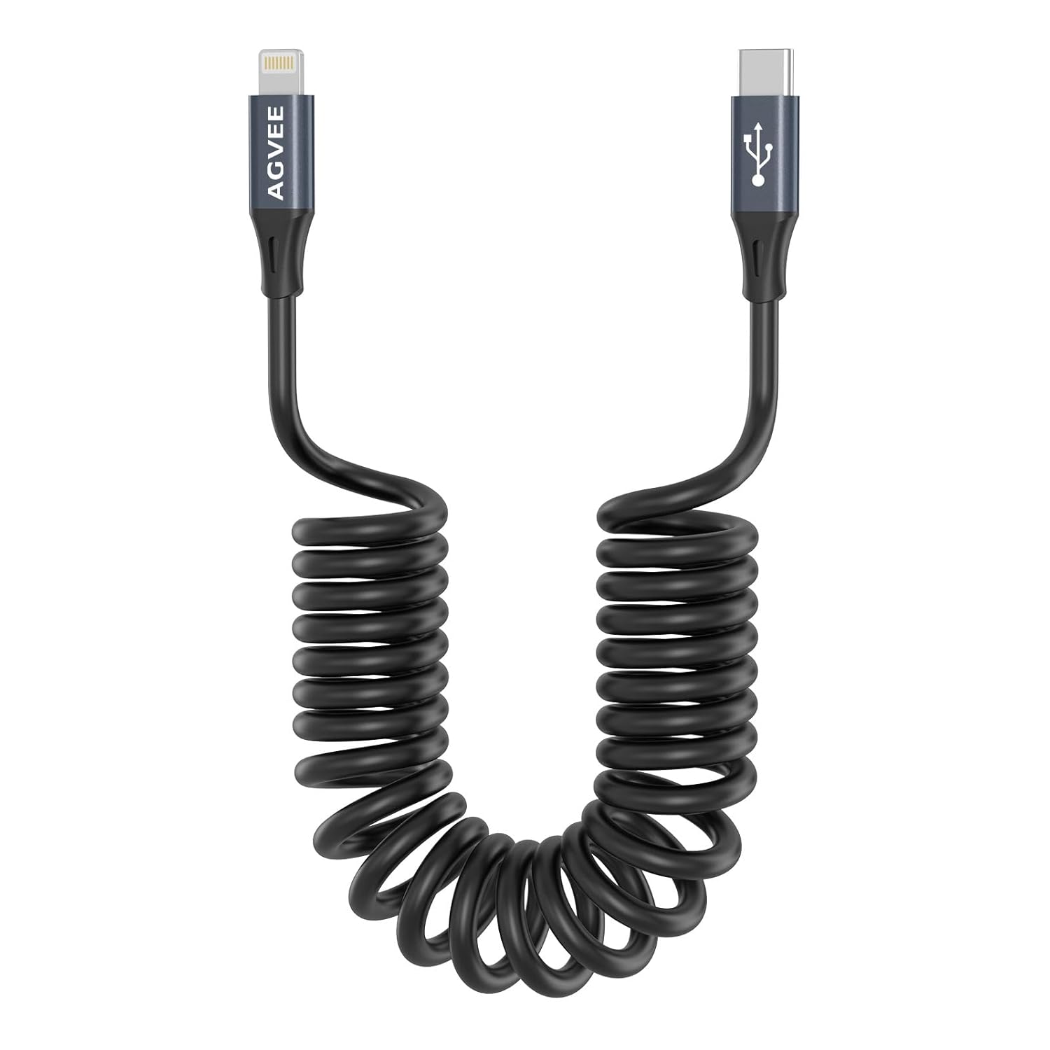 AGVEE 3ft Coiled Short USB-C to Lightning Charging Cable [MFI Certified] 30W PD Fast Charger Cord in Car for iPhone 14/13/12/11/XS/8/7/6/5 CarPlay, iPad, iPod, Dark Gray