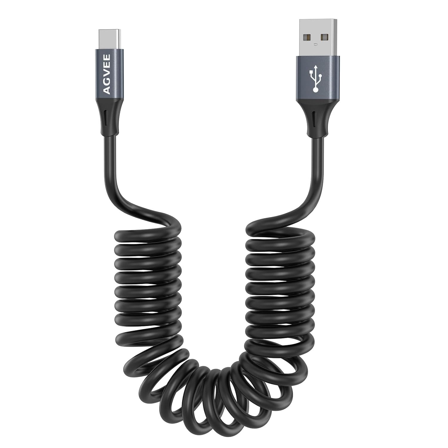 AGVEE 2 Pack 3ft Coiled Short USB to USB-C Charging Cable [USB-IF Certified] 3A Fast Charger Cord in Car for iPhone 16/15 CarPlay, Galaxy S25 S24 S23 S22 S21 S10 S9 S8, Google Pixel, Dark Gray