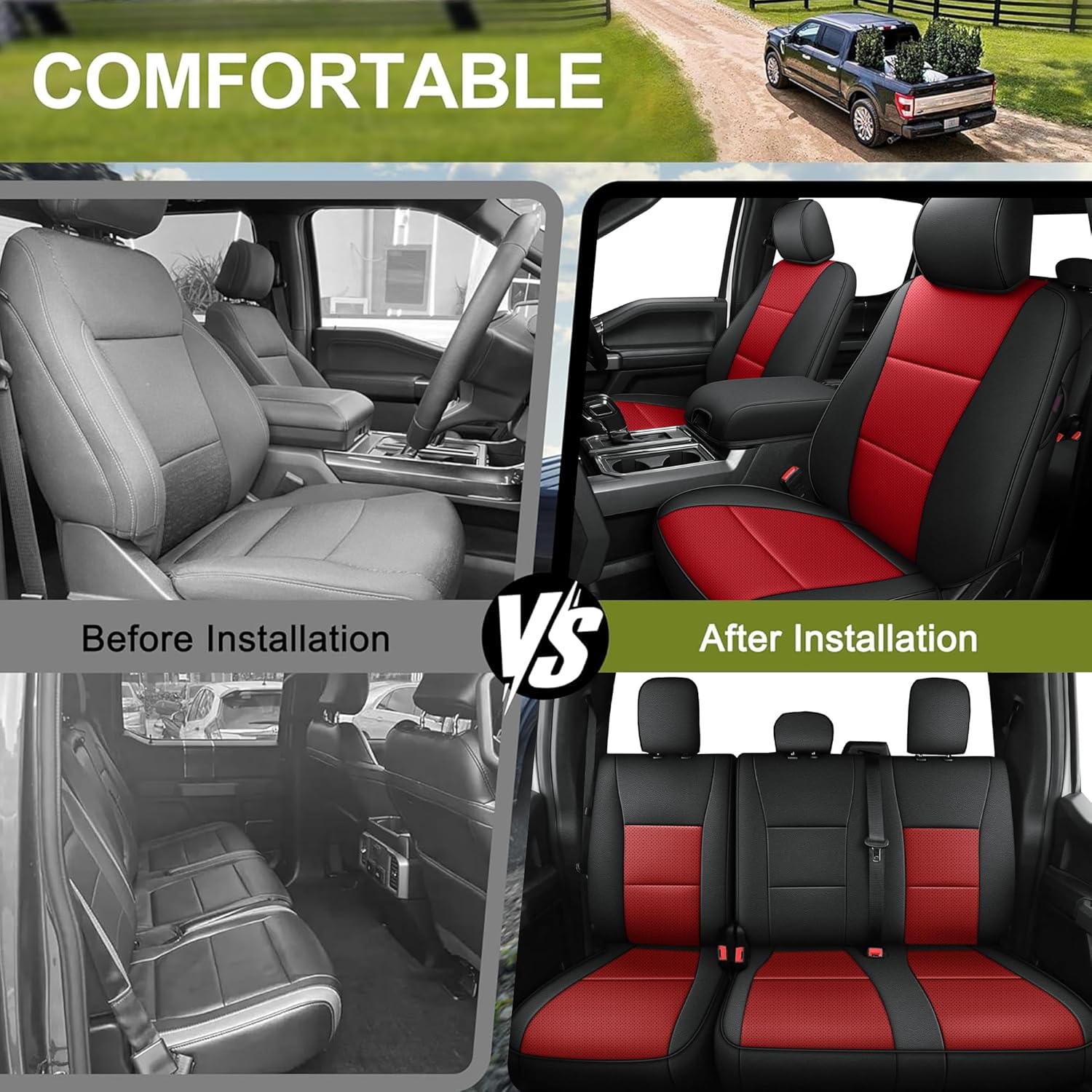 - EASY TO INSTALL: Seat covers for ford f150 installation manual is included in the package, please read it before starting the installation, then you can install the seat covers more easily. Any question, you can contact us, we will try our best to solve your problem