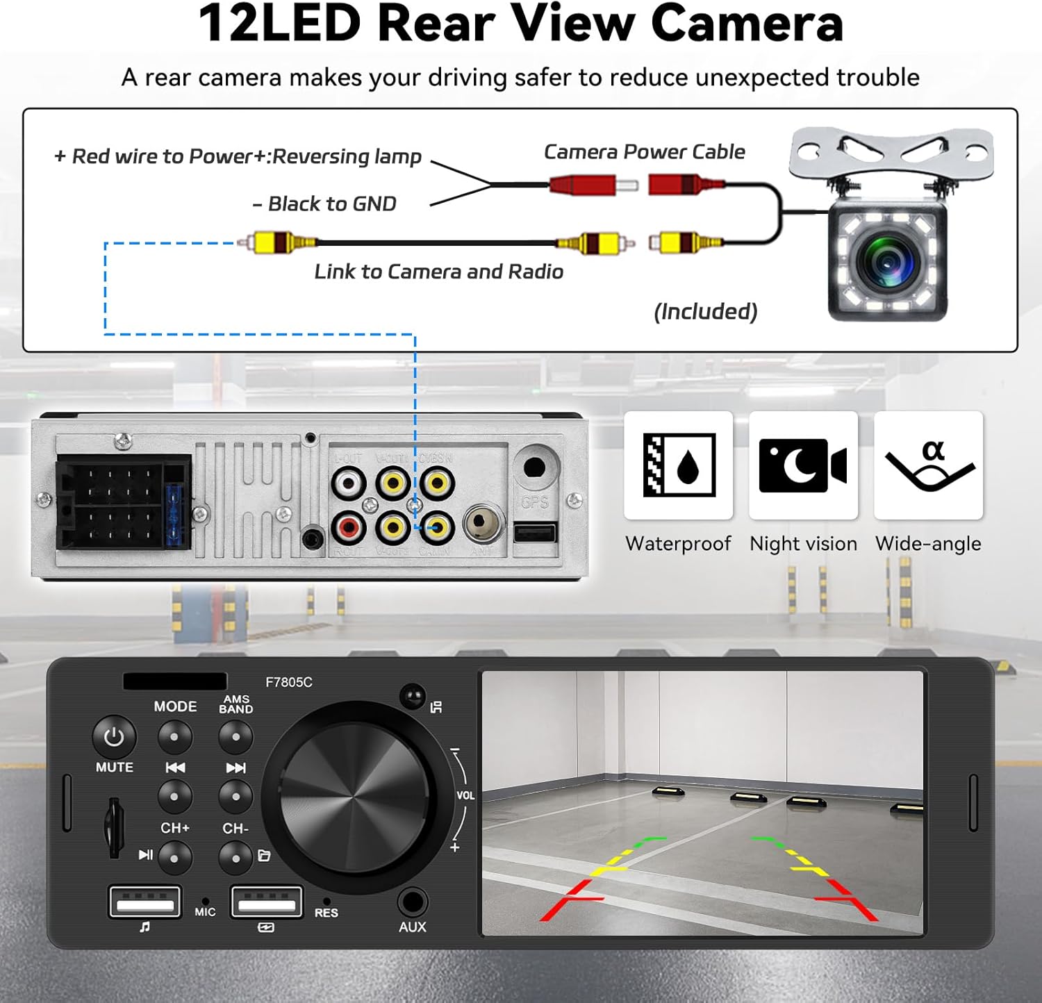 - Backup Camera Input & SWC: Car radio comes with a 12 LED backup camera, and it will automatically switch to display clear reversing image while the car is under rear gear status. Making your daily parking safer.Support steering wheel control and conveniently switch radio songs, volume, calls, keep your driving safer