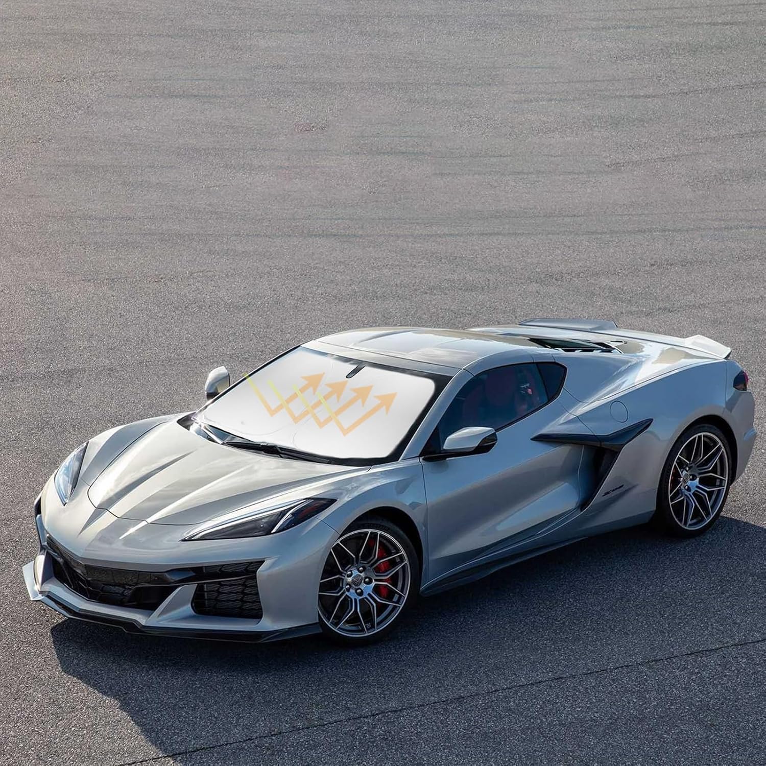 - ăVehicle SpecificăOur Windshield Shade Cover custom fit for Chevrolet Chevy Corvette 2020 2021 2022 2023 2024 2025 2026 Accessories ,Full covered your windshield,No Gap,100% Perfect fit. The precise fit design and reinforced steel ring are sufficient to allow the sun shade to precisely fit the front window without the need for suction cups to hold it in place, effectively protecting your car from the sun's rays.