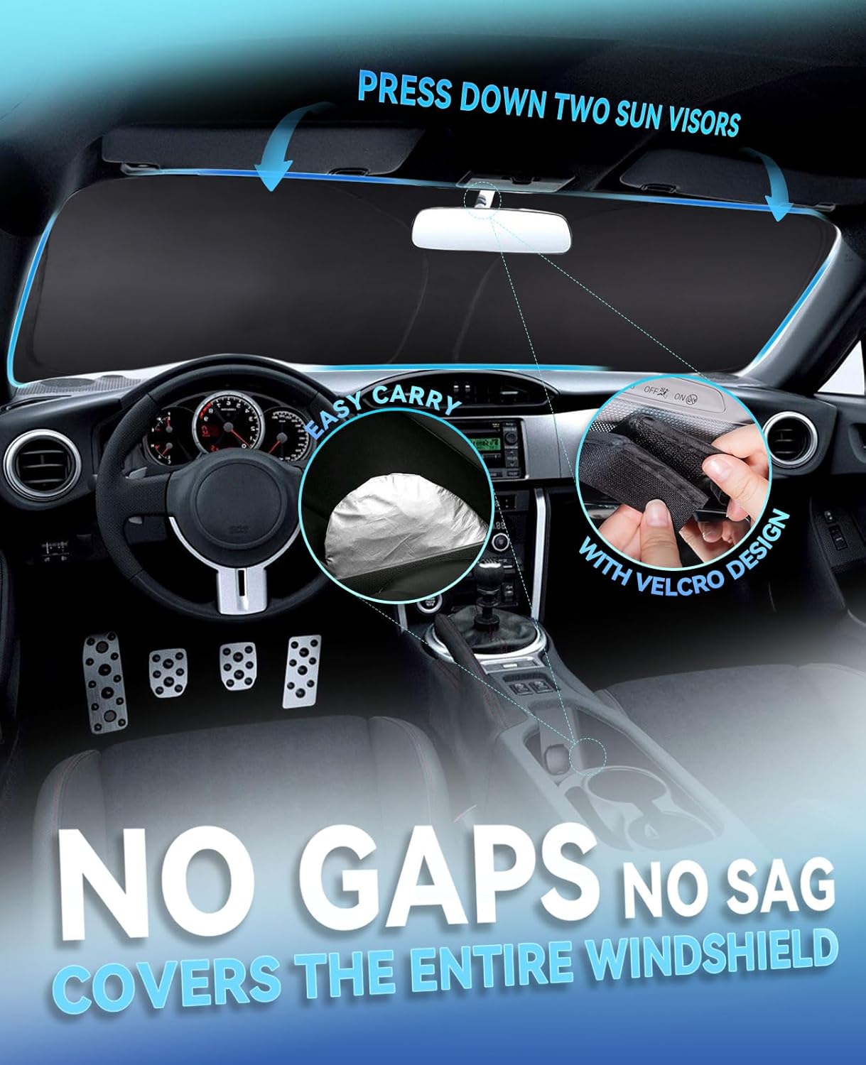 - ăBlocks excessive hot sun & heată: Made of 240T polyester fabric with a black insulation layer and a silver reflective layer, this sunshade is lightweight and wear-resistant, providing superior insulation and sun protection. Save energy and gasoline by eliminating the need to wait 15 minutes for your car to cool down on hot days.