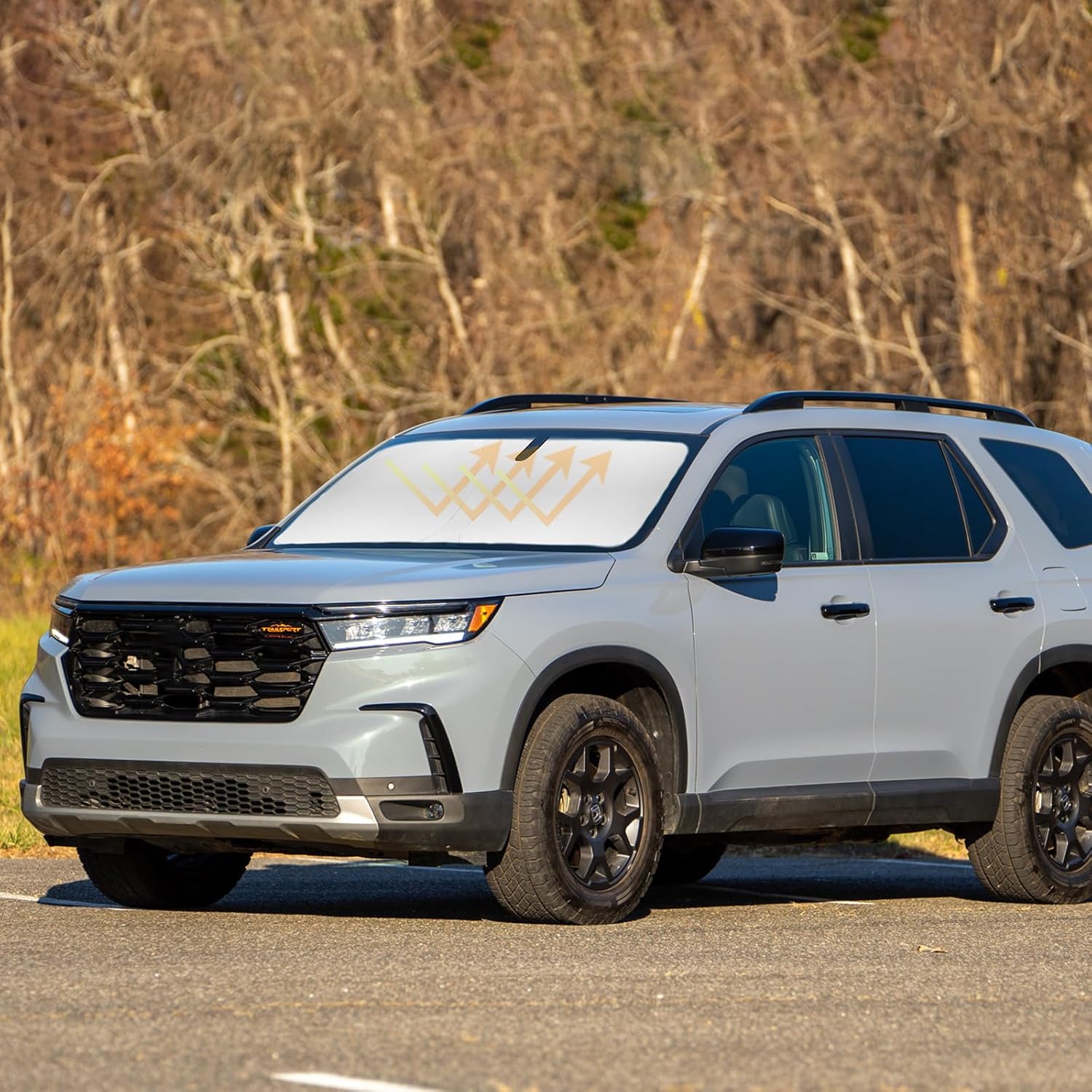 - ăVehicle SpecificăOur Windshield Shade Cover custom for 2016-2023 2024 2025 2026 Honda Pilot Accessories ,Full covered your windshield,No Gap,100% Perfect fit. The precise fit design and reinforced steel ring are sufficient to allow the sun shade to precisely fit the front window without the need for suction cups to hold it in place, effectively protecting your car from the sun's rays.